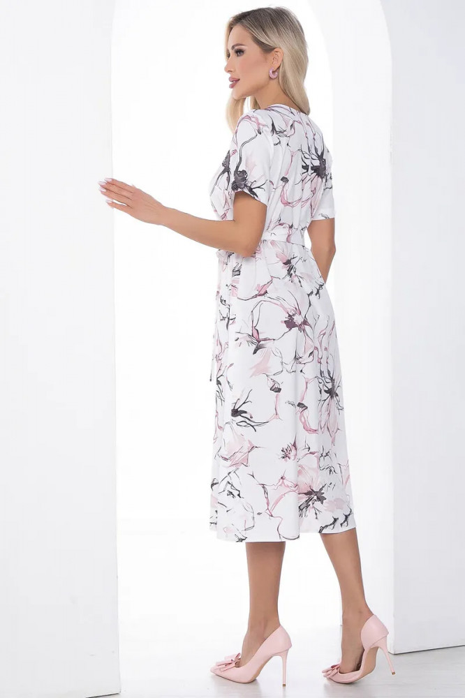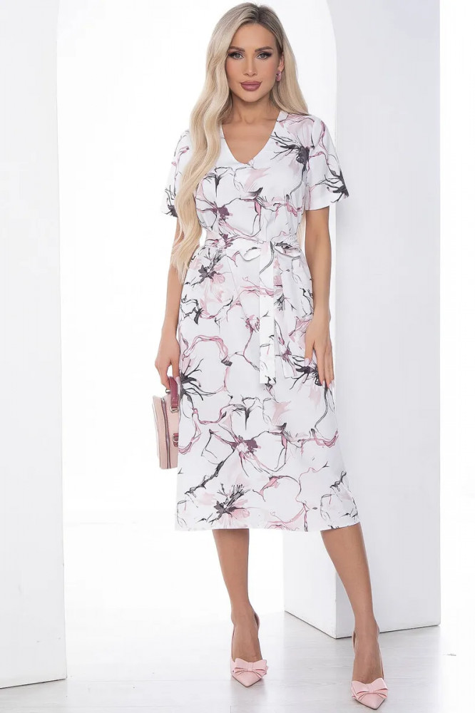 Ткань платья легкая, немного тянется. На рост 165см, длина до середины икры. Расцветка не блеклая, в меру яркая. Пояс подчеркивает талию. На 48 размер большевато, но оставила. Платье хорошее, понравилось. Надеюсь жарким летом будет в нем легко.