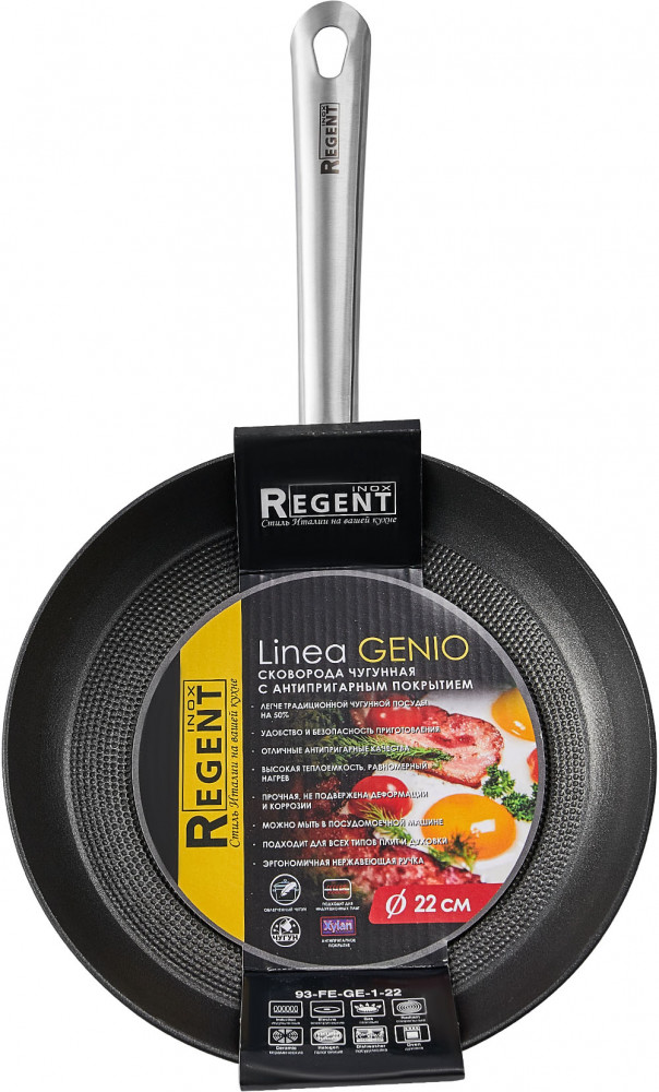 Сковорода «Genio» из чугуна с антипригарным покрытием. Структура рифленого дна в виде сот позволяет использовать меньше масла и жира , препятствует растеканию, равномерно распределяет его по поверхности. Безопасное многослойное антипригарное покрытие. Имеет долгий срок службы.
