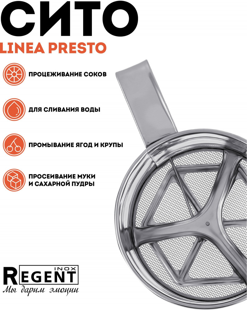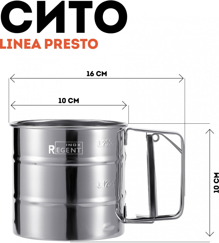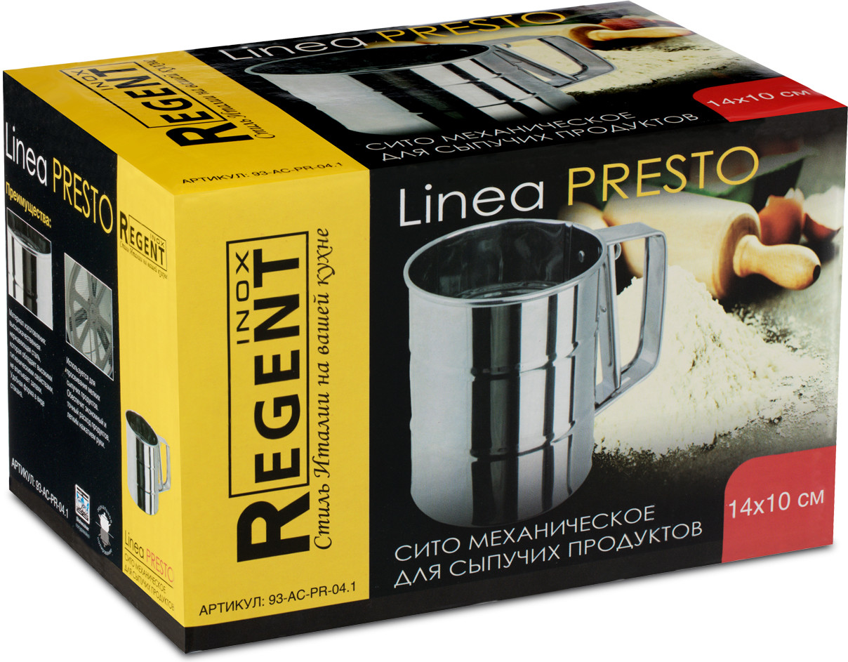 Regent Сито механическое «Presto»качественный материал граммовка удобство использования В данный момент этот товар отсутствует в продаже. Возможно, у нас найдется аналогичный или похожий товар здесь. Серия: Pronto С помощью обыкновенного классического сита отсеивать муку не совсем комфортно, и по этой причине многие хозяйки воздерживаются от подобного процесса. С механическим ситом этот процесс стал гораздо легче. Благодаря специальной конструкции ситового дна и эргономичной формы двухсекционной ручки, мука, сахарная пудра и какао просеиваются восхитительно быстро и легко. Нажимая на рычаг под ручкой, Вы запускаете механизм, с помощью которого происходит просеивание. Изделие выполнено из высококачественной нержавеющей стали с зеркальной полировкой, которая характеризуется гигиеничностью. |