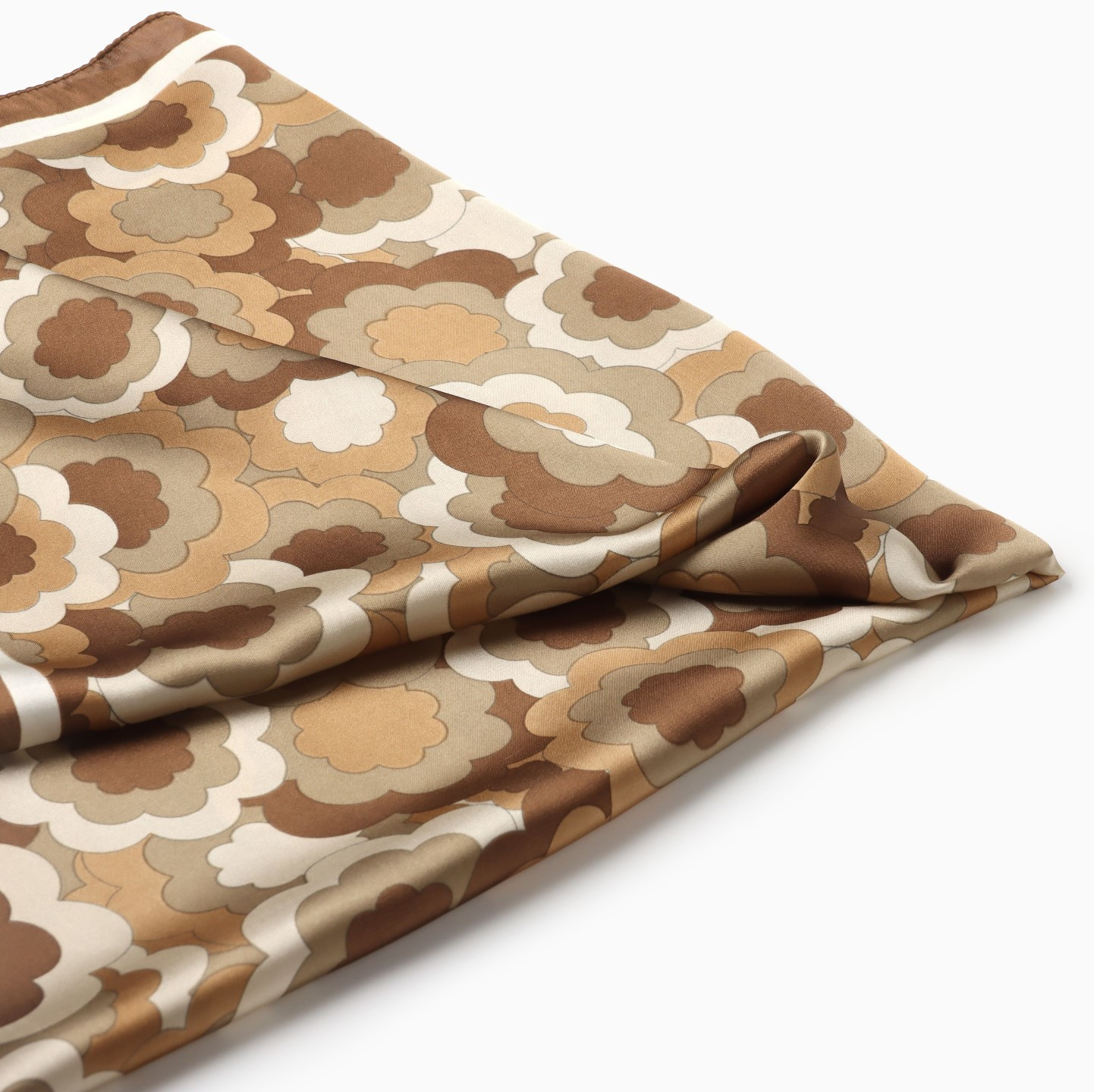 Нежный платок на шею, льющаяся ткань. Но быстро появляются затяжки, если потянуть ее, типа как разрывы