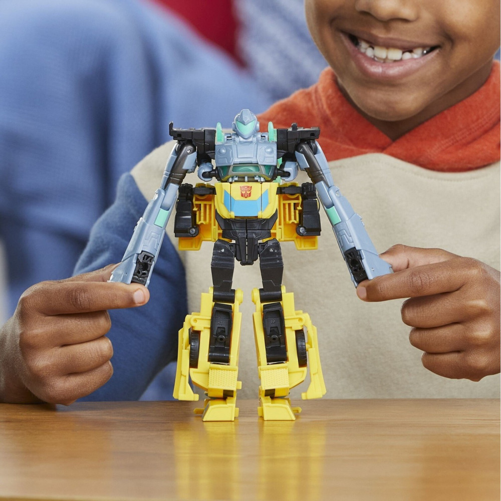 С набором Transformers: EarthSpark Cyber-Combiner можно играть так много! Переведите фигурку Трансформера Бамблби из режима робота в режим автомобиля за 9 шагов, представьте, как Мо Мальто в ее кибер-костюме мчится в бой, или объедините фигурки двумя разными способами, чтобы создать сверхмощного Бамблби или Мо! В комплект этой игрушки-трансформера также входит прикрепляемый аксессуар «Кибер-меч», который поможет вам рассказывать истории. Ищите дополнительные наборы фигурок Cyber-Combiner (продаются отдельно, в зависимости от наличия), чтобы создавать дополнительные потрясающие комбинации! Игрушки-трансформеры, такие как Cyber-Combiner, станут отличным подарком для мальчиков и девочек от 6 лет и старше.