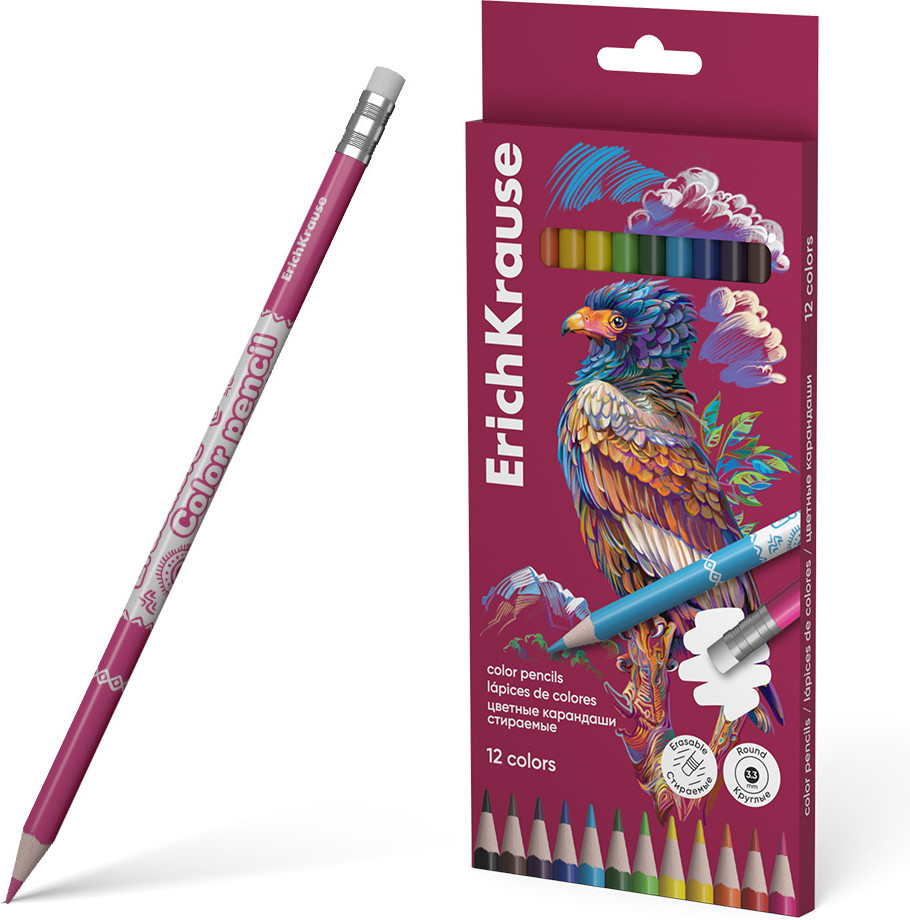 Erich Krause Набор карандашей цветных стираемых с ластиком
