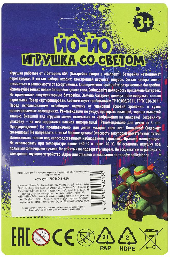 Играем вместе Игрушка развивающая «Йо-йо»В данный момент этот товар отсутствует в продаже. Возможно, у нас найдется аналогичный или похожий товар здесь. Серия: Turtles attack Йо-йо ТМ «Играем вместе» станет прекрасным подарком для маленьких непосед. Эта красочная игрушка не оставит ребёнка равнодушным, он с удовольствуем будет опускать и поднимать яркие диски на верёвочке и даже сможет освоить интересные трюки. Благодаря компактному размеру йо-йо можно брать с собой на прогулку или в поездку. Игра с йо-йо ТМ «Играем вместе» развивает мелкую моторику, ловкость, координацию движений. |