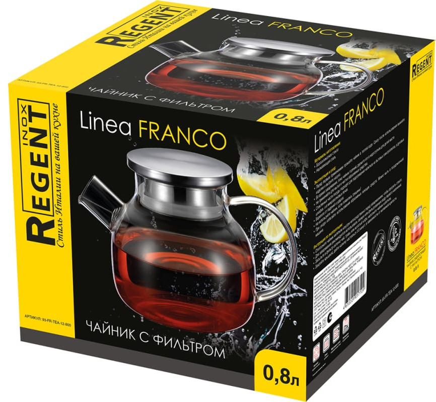 Regent Чайник заварочныйдобротный крышка дизайн легкость В данный момент этот товар отсутствует в продаже. Возможно, у нас найдется аналогичный или похожий товар здесь. Серия: Franco Чайник изготовлен из высококачественного боросиликатного стекла. Обладает повышенной устойчивостью к термическому и механическому воздействию. Благодаря стильному дизайну чайник Regent inox легко впишется в любой интерьер. |