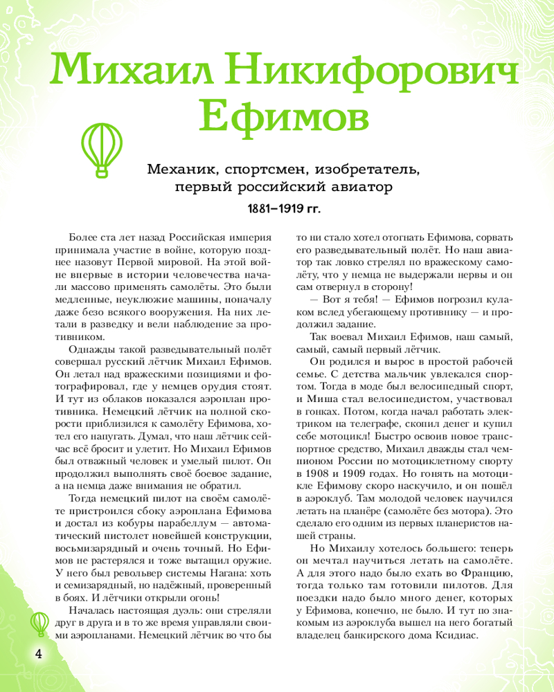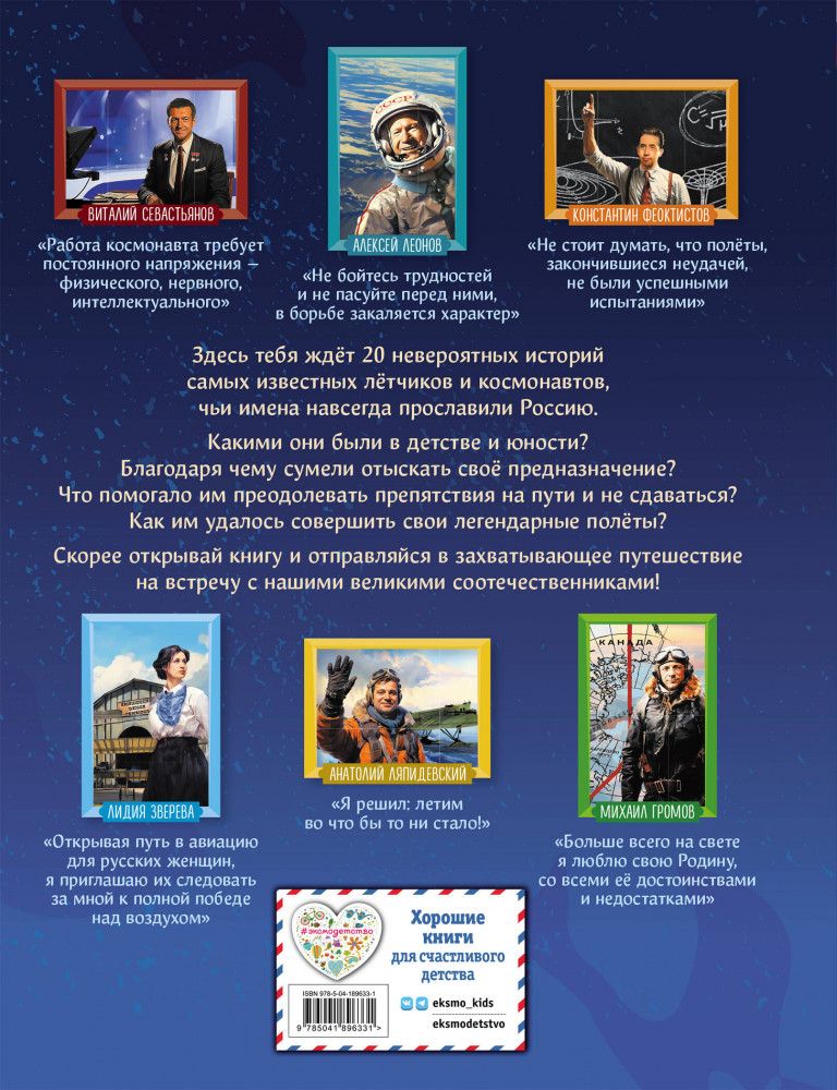 💳 Оплатить за товар можно при получении 🇰🇿 Есть бесплатная доставка по Казахстану от 1 дня 🎁 Копите бонусы с каждой покупки Серия: Великие люди великой страны Эта книга серии «Великие люди великой страны» рассказывает о двадцати знаменитых авиаторах, лётчиках и космонавтах, чьи имена навсегда останутся в истории. Кто совершил первый авиационный полёт в Российской империи? Какая наша соотечественница является первой в мире женщиной —военным лётчиком? Как отправлялись покорять космос Гагарин, Терешкова, Титов и Леонов? Захватывающие сюжеты в жанре нарративного нонфикшена, исторических «детективов» и «боевиков»! В каждом рассказе — вдохновляющая читателей на собственные свершения история успеха, невероятный пример силы воли и стойкости характера! Динамичные, запоминающиеся, современные, яркие иллюстрации созданы специально для этой книги! Издание предназначено для среднего школьного возраста, однако будет интересно и взрослым, а также станет неповторимым подарком по любому поводу для всех, кто любит Россию и гордится ею. Читайте всей семьёй и узнавайте всё самое интересное о великих людях! |