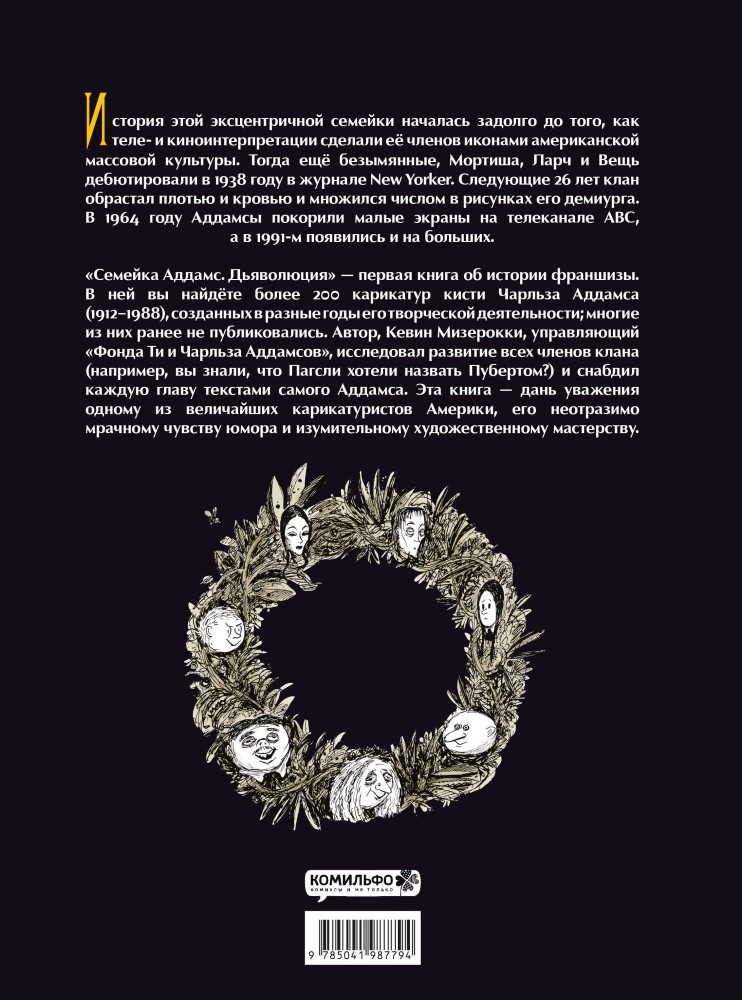 💳 Оплатить за товар можно при получении 🇰🇿 Есть бесплатная доставка по Казахстану от 1 дня 🎁 Копите бонусы с каждой покупки Серия: Комильфо. Артбуки и графические романы История этой эксцентричной семейки началась задолго до того, как теле- и киноинтерпретации сделали её членов иконами американской массовой культуры. Тогда ещë безымянные, Мортиша, Ларч и Вещь дебютировали в 1938 году в журнале New Yorker. Следующие 26 лет клан обрастал плотью и кровью и множился числом в рисунках его демиурга. В 1964 году Аддамсы покорили малые экраны на телеканале ABC, а в 1991-м появились и на больших. |