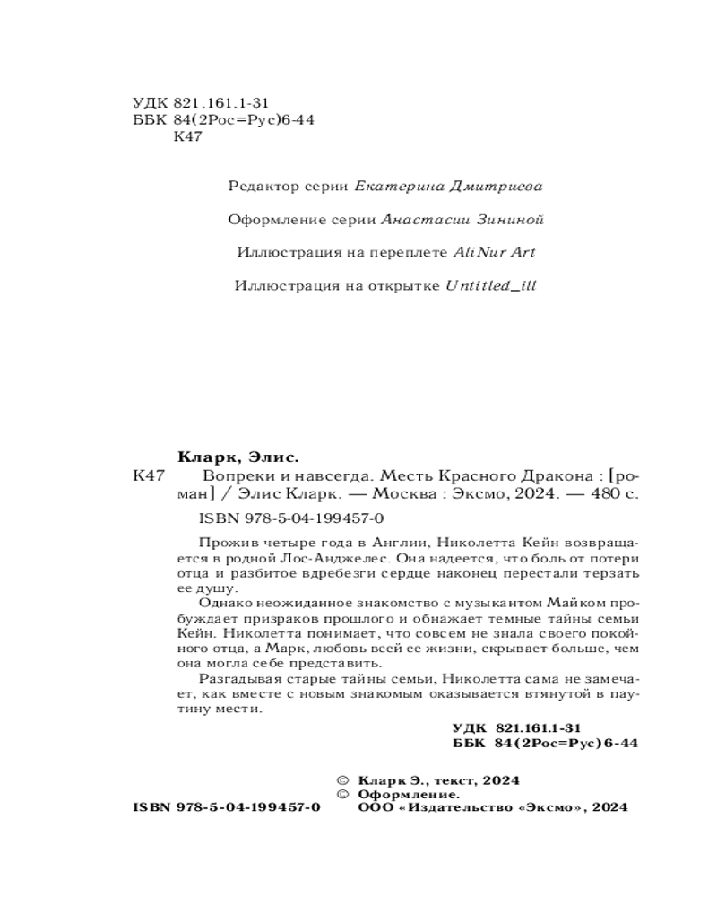 💳 Оплатить за товар можно при получении 🇰🇿 Есть бесплатная доставка по Казахстану от 1 дня 🎁 Копите бонусы с каждой покупки Серия: Dark Romance. Вопреки всему. Романы Элис Кларк Книги Элис Кларк — это будоражащий коктейль из опасных тайн прошлого и обжигающих, порой запретных, чувств. С каждой новой страницей мы все глубже погружаемся в жизнь героев, порой ненавидим их, порой жалеем, но никогда не остаемся равнодушными. Каждая история автора — это история падения и взлета, в которой мы не просто наблюдатели! |