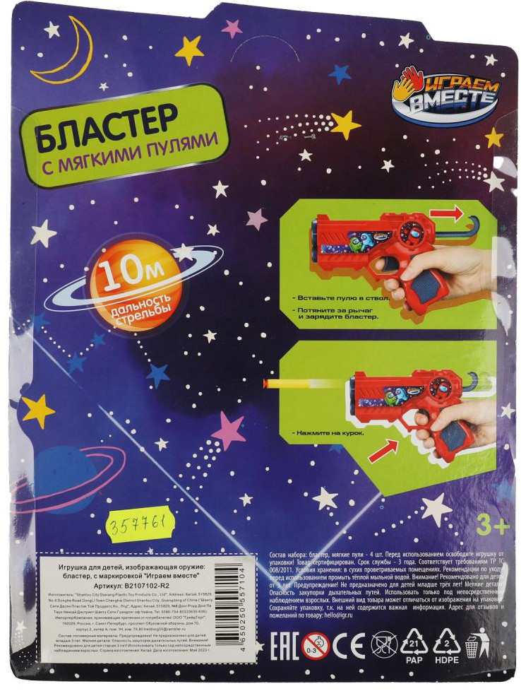 Играем вместе Бластер с мягкими пулямиВ данный момент этот товар отсутствует в продаже. Возможно, у нас найдется аналогичный или похожий товар здесь. Бластер с мягкими пулями ТМ «Играем вместе» непременно понравится юному герою. |