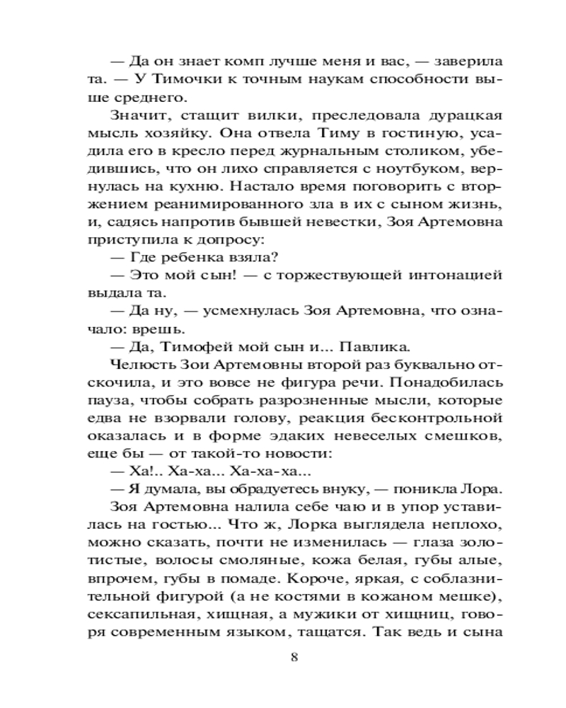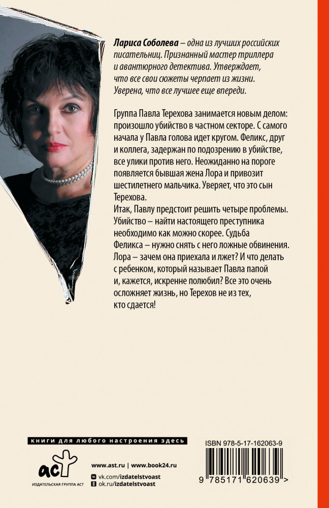 | Лариса Павловна Соболева - автор популярных авантюрных детективов. Лариса - уникальная личность. В прошлом актриса, в будущем талантливый сценарист. |