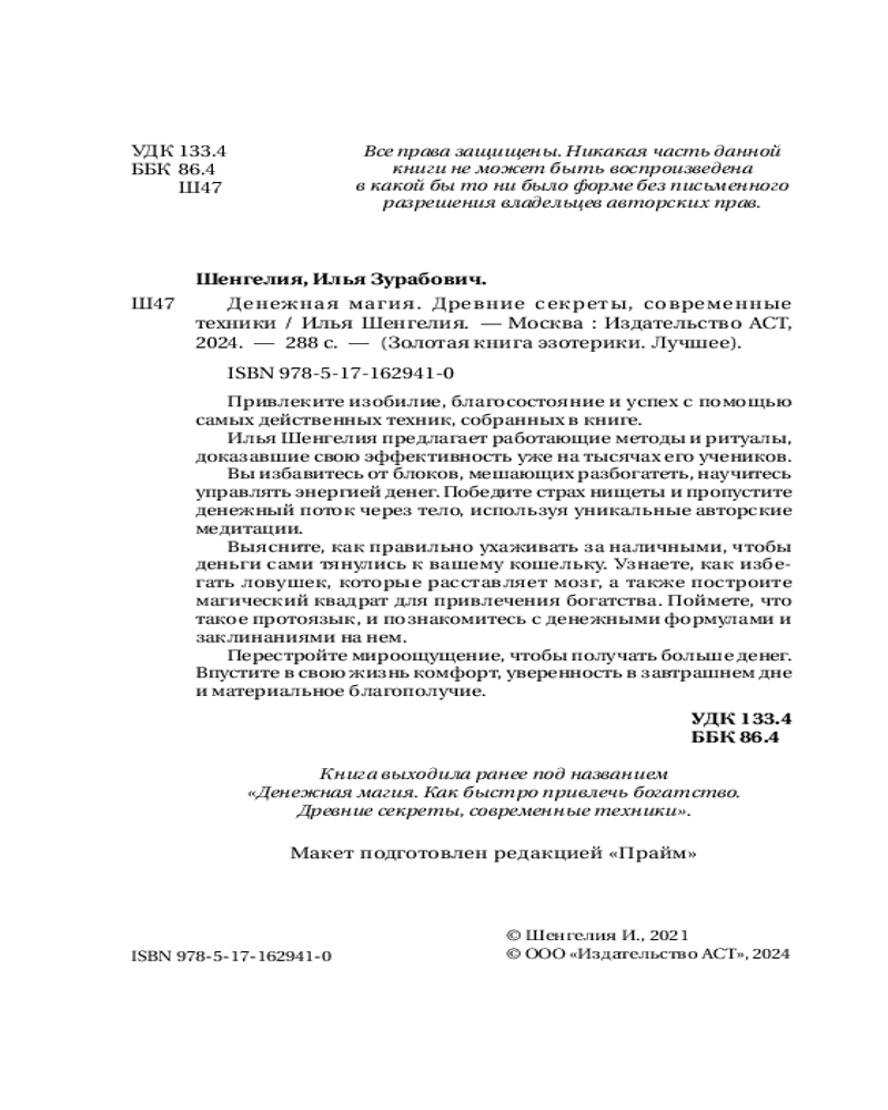 💳 Оплатить за товар можно при получении 🇰🇿 Есть бесплатная доставка по Казахстану от 1 дня 🎁 Копите бонусы с каждой покупки Серия: Золотая книга эзотерики. Лучшее Привлеките изобилие, благосостояние и успех с помощью самых действенных техник, собранных в книге. Илья Шенгелия предлагает работающие методы и ритуалы, доказавшие свою эффективность уже на тысячах его учеников. Вы избавитесь от блоков, мешающих разбогатеть, научитесь управлять энергией денег. Победите страх нищеты и пропустите денежный поток через тело, используя уникальные авторские медитации. Выясните, как правильно ухаживать за наличными, чтобы деньги сами тянулись к вашему кошельку. Узнаете, как избегать ловушек, которые расставляет мозг, а также построите магический квадрат для привлечения богатства. Поймете, что такое протоязык, и познакомитесь с денежными формулами и заклинаниями на нем. Перестройте мироощущение, чтобы получать больше денег. Впустите в свою жизнь комфорт, уверенность в завтрашнем дне и материальное благополучие. |