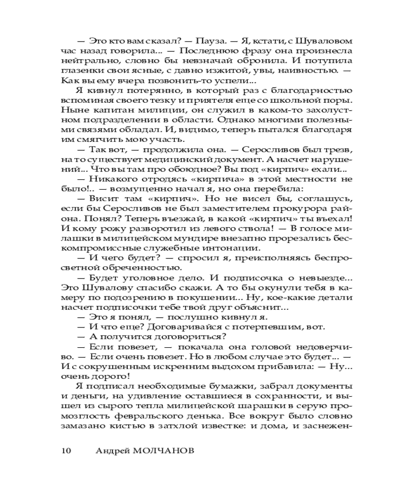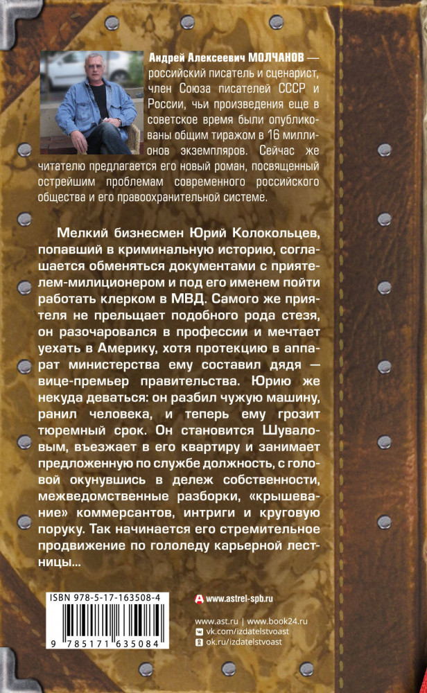 💳 Оплатить за товар можно при получении 🇰🇿 Есть бесплатная доставка по Казахстану от 1 дня 🎁 Копите бонусы с каждой покупки Серия: Мастера криминальной прозы Мелкий бизнесмен Юрий Колокольцев, попавший в криминальную историю, соглашается обменяться документами с приятелем-милиционером, и под его именем пойти работать клерком в МВД. Самого же приятеля не прельщает подобного рода стезя, он разочаровался в профессии и мечтает уехать в Америку, хотя протекцию в аппарат министерства ему составил дядя — вице-премьер правительства. Юрию же некуда деваться: он разбил чужую машину, ранил человека, и теперь ему грозит тюремный срок. Он становится Шуваловым, въезжает в его квартиру и занимает предложенную по службе должность, с головой окунувшись в дележ собственности, межведомственные разборки, «крышевание» коммерсантов, интриги и круговую поруку. Так начинается его стремительное продвижение по гололеду карьерной лестницы... |