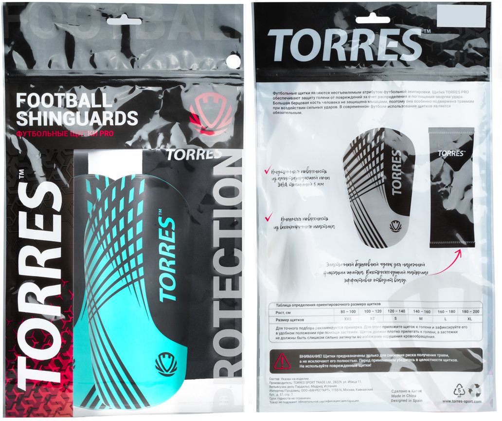 TORRES Щитки футбольные с чулком