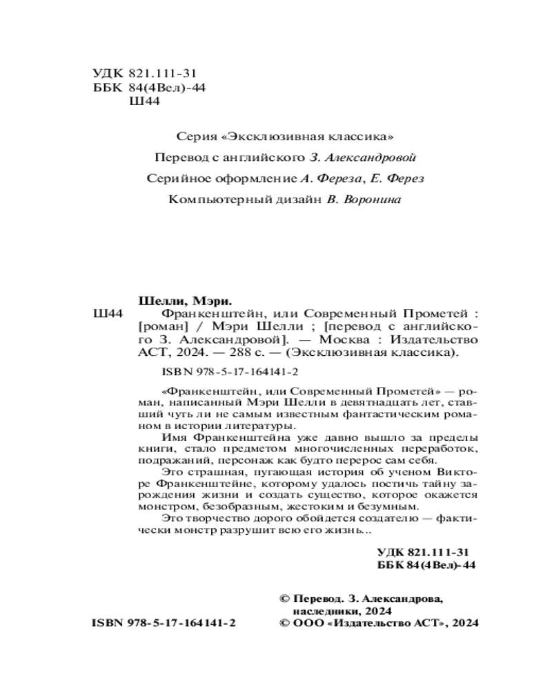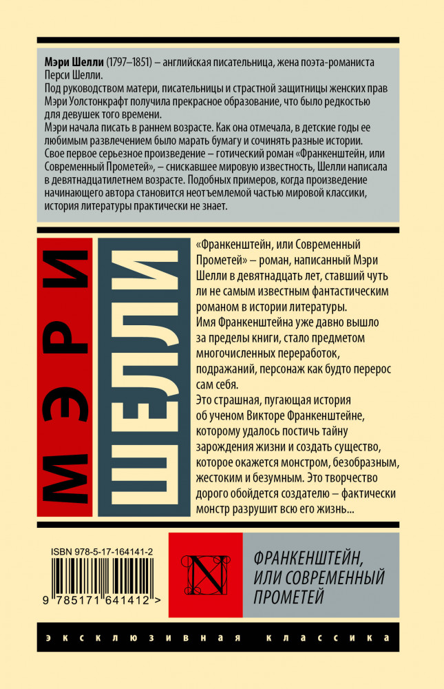 💳 Оплатить за товар можно при получении 🇰🇿 Есть бесплатная доставка по Казахстану от 1 дня 🎁 Копите бонусы с каждой покупки Серия: Эксклюзивная классика (Лучшее) «Франкенштейн, или Современный Прометей» — роман, написанный Мэри Шелли в девятнадцать лет, ставший чуть ли не самым известным фантастическим романом в истории литературы. Имя Франкенштейна уже давно вышло за пределы книги, стало предметом многочисленных переработок, подражаний, персонаж как будто перерос сам себя. Это страшная, пугающая история об ученом Викторе Франкенштейне, которому удалось постичь тайну зарождения жизни и создать существо, которое окажется монстром, безобразным, жестоким и безумным. Это творчество дорого обойдется создателю — фактически монстр разрушит всю его жизнь... |