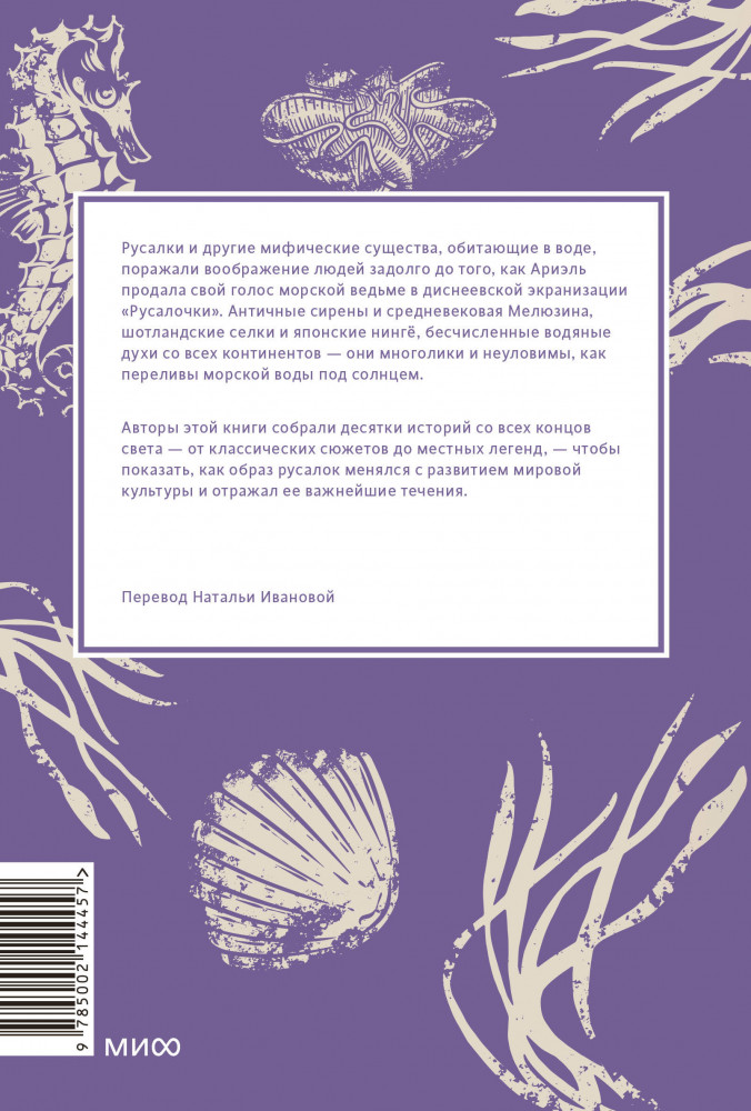 Мифы о русалках. От сирен и Мелюзины до нингё и АриэльКристина Баччилега, Мари Алохалани Браун В данный момент этот товар отсутствует в продаже. Возможно, у нас найдется аналогичный или похожий товар здесь. Серия: Мифы от и до Русалки и другие мифические существа, обитающие в воде, поражали воображение людей задолго до того, как Ариэль продала свой голос морской ведьме в диснеевской экранизации «Русалочки». Античные сирены и средневековая Мелюзина, шотландские селки и японские нингё, бесчисленные водяные духи со всех континентов — они многолики и неуловимы, как переливы морской воды под солнцем. |