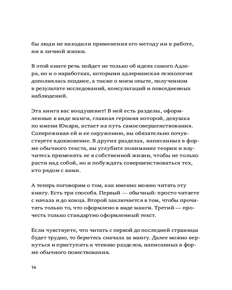 💳 Оплатить за товар можно при получении 🇰🇿 Есть бесплатная доставка по Казахстану от 1 дня 🎁 Копите бонусы с каждой покупки Серия: Бизнес-манга для успеха Хотите стать сильным лидером для своей команды и помогать сотрудникам добиваться выдающихся результатов? Эта бизнес-манга для вас. Главная героиня Юкари работает управляющей магазина в популярной сети пекарен. Накануне нового года руководство объявляет о вакансии управляющего нового зарубежного магазина сети. Это место займет тот из менеджеров, чей магазин в рождественские дни обеспечит самый высокий объем продаж. Юкари полна решимости победить. Но для этого надо сплотить команду и вдохновить своих сотрудников, а еще обойти главного конкурента — красавчика Руи Номуру, который стабильно получает звание лучшего менеджера сети. Понимая, что дело не только в бизнес-процессах, Юкари начинает изучать принципы индивидуальной психологии Альфреда Адлера и использовать их на практике. Какие изменения это привносит в ее жизнь? |