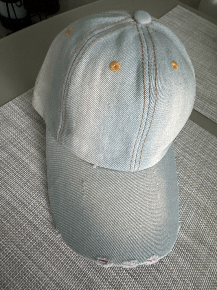 Бейсболка из летнего денима. Внутренняя бейка вшита из плащевки, что облегчит не чистку изнутри.