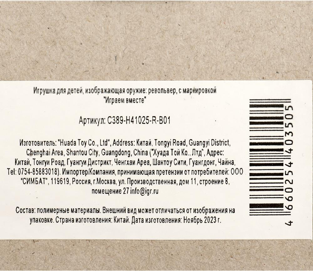 Играем вместе Револьвер для стрельбы пистонамиВ данный момент этот товар отсутствует в продаже. Возможно, у нас найдется аналогичный или похожий товар здесь. Серия: Смерч Игровое оружие с реалистичным звуком и лёгким дымовым эффектом станет любимой игрушкой вашего ребёнка. Револьвер легко заряжается и перезаряжается, нужно просто откинуть 8-зарядный барабан и установить кольцо с пистонами (приобретаются отдельно). |
