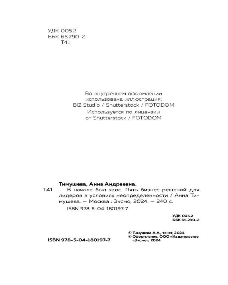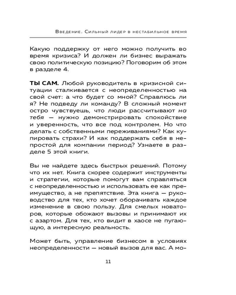 Серия: Психология. Искусство лидера Мир крайне нестабилен. И оставаться устойчивым к переменам — ключевой навык сильного и эффективного руководителя. Эта книга — руководство для тех, кто хочет видеть в хаосе не пугающую реальность, а интересные возможности для роста. Эксперт в области менеджмента в крупных российских и международных компаниях Анна Тимушева выделяет 5 главных неопределенностей в бизнесе и дает на каждую из них набор инструментов и конкретную стратегию решения. Благодаря чему вы сможете оставаться конкурентоспособным и научиться приспосабливаться к этим постоянным переменам. |