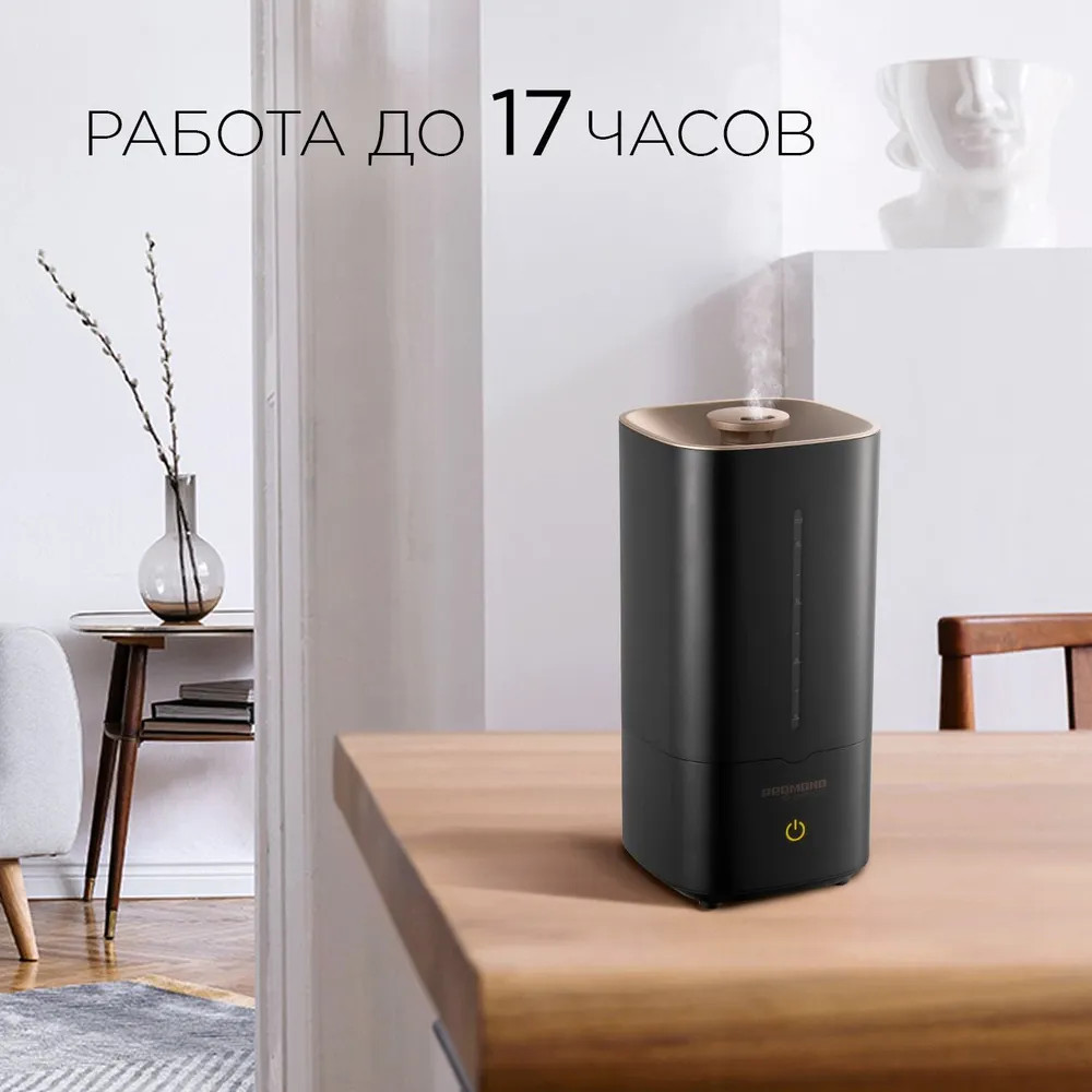 Увлажнитель воздуха RHF-3328 поддержит здоровый микроклимат в доме, офисе или на даче. Работа до 17 часов Резервуар для воды объемом 4,5 л позволяет RHF-3328 работать до 17 часов без перерыва. Расход воды составляет всего 260 мл в час. RHF-3328 при небольших размерах может обслуживать довольно большую площадь — до 40 м². Устройство справится как с небольшой комнатой или квартирой-студией, так и с офисом или салоном красоты.