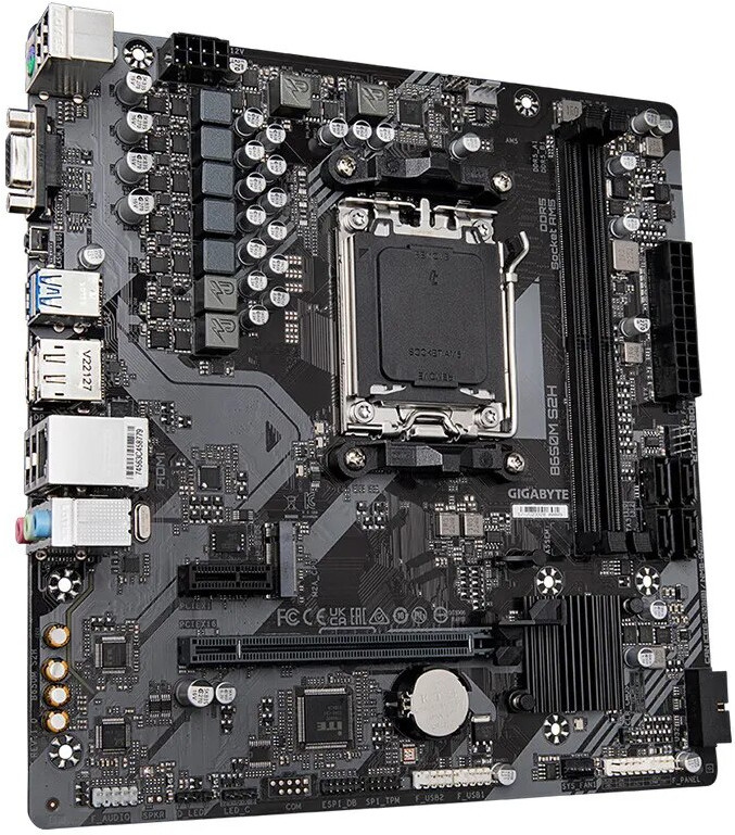 💳 Оплатить за товар можно при получении 🇰🇿 Есть бесплатная доставка по Казахстану от 1 дня 🎁 Копите бонусы с каждой покупки Материнская плата GIGABYTE B650M S2H в форм-факторе Micro-ATX с размерами 230×225 мм подходит для сборки аппаратной платформы в компактном системном блоке ПК. Она поддерживает совместную работу с процессором AMD, который подключается через сокет AM5. Для модулей оперативной памяти суммарным объемом до 96 ГБ предусмотрены 2 слота DIMM стандарта DDR5. Графическую дискретную видеокарту можно разместить при помощи слотов PCI-E x16 и PCI-E x1. Установка накопителей HDD/SSD реализована благодаря 4 разъемам SATA и 1 M.2. |