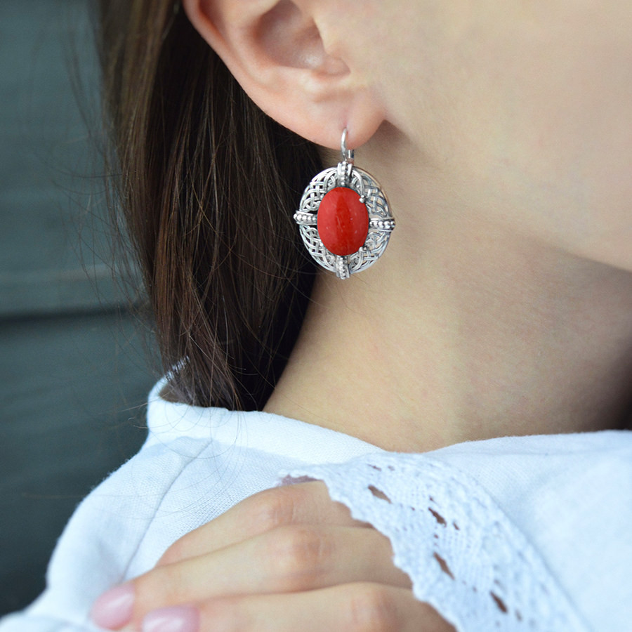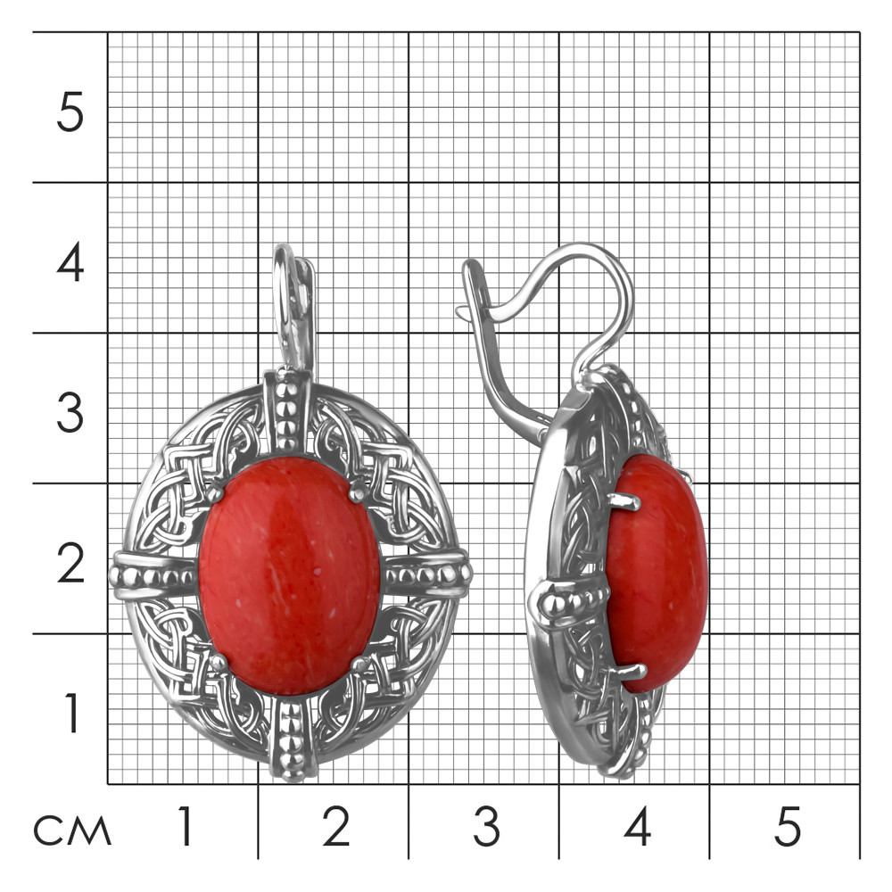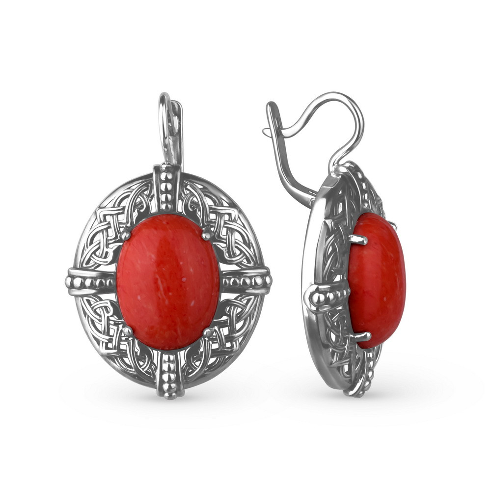Костромской ювелирный завод Серьги из серебра с кораллами