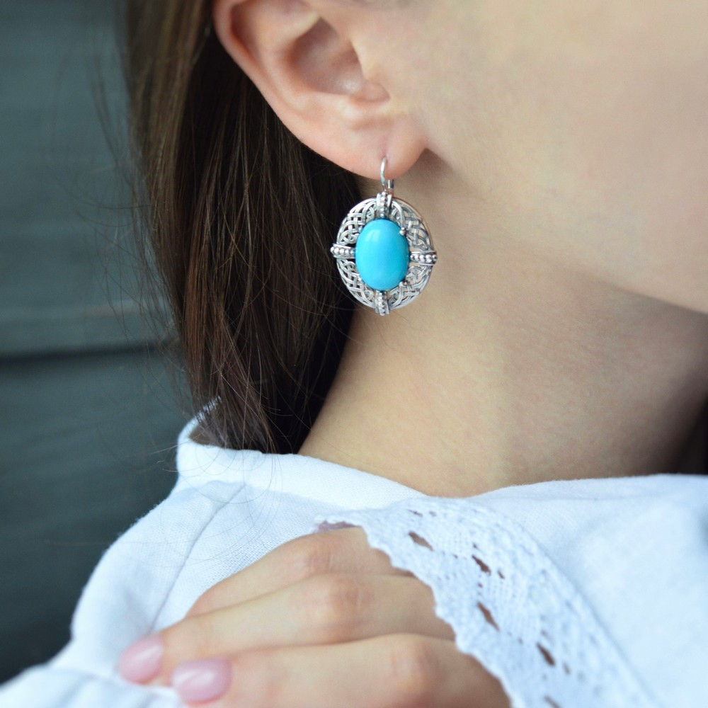 Костромской ювелирный завод Серьги из серебра с бирюзой