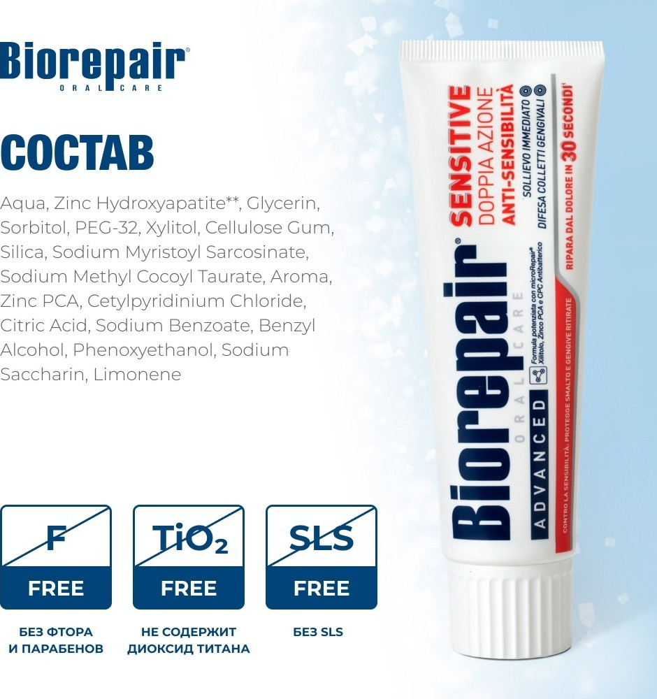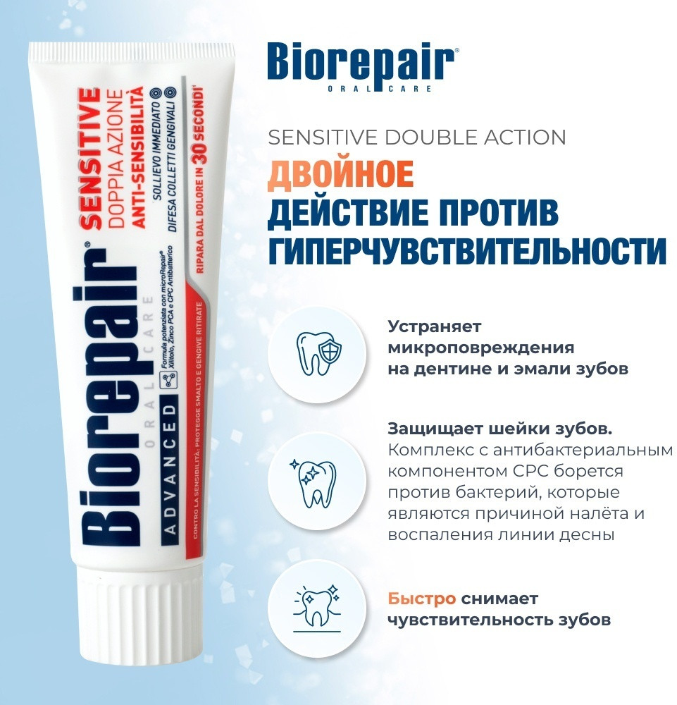 Biorepair Зубная паста Sensitive Double Action против гиперчувствительности для чувствительных зубов