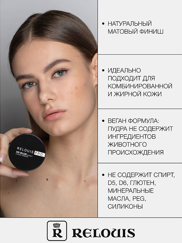 RELOUIS Пудра для лица фиксирующая с эффектом блюра «Pro HD blur effect fixing powder»-20% +79 подходит тон матирует тонкая текстура сглаживает поры