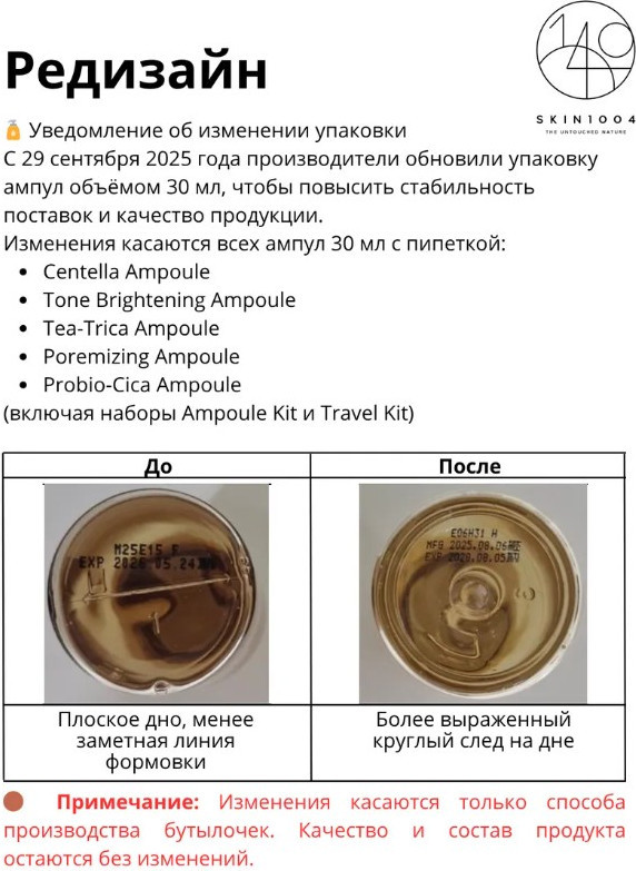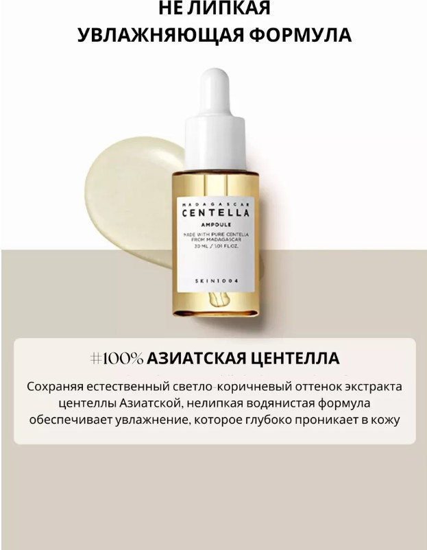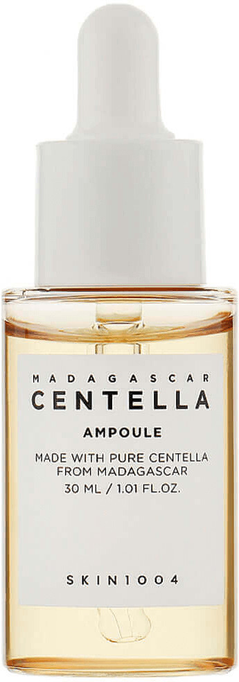 Madagascar Centella Ampoule бетке арналған ампулалық сарысуы — қолжетімді косметика шығаратын оңтүстік кореялық SKIN1004 брендінің жоғары сапалы өнімі.