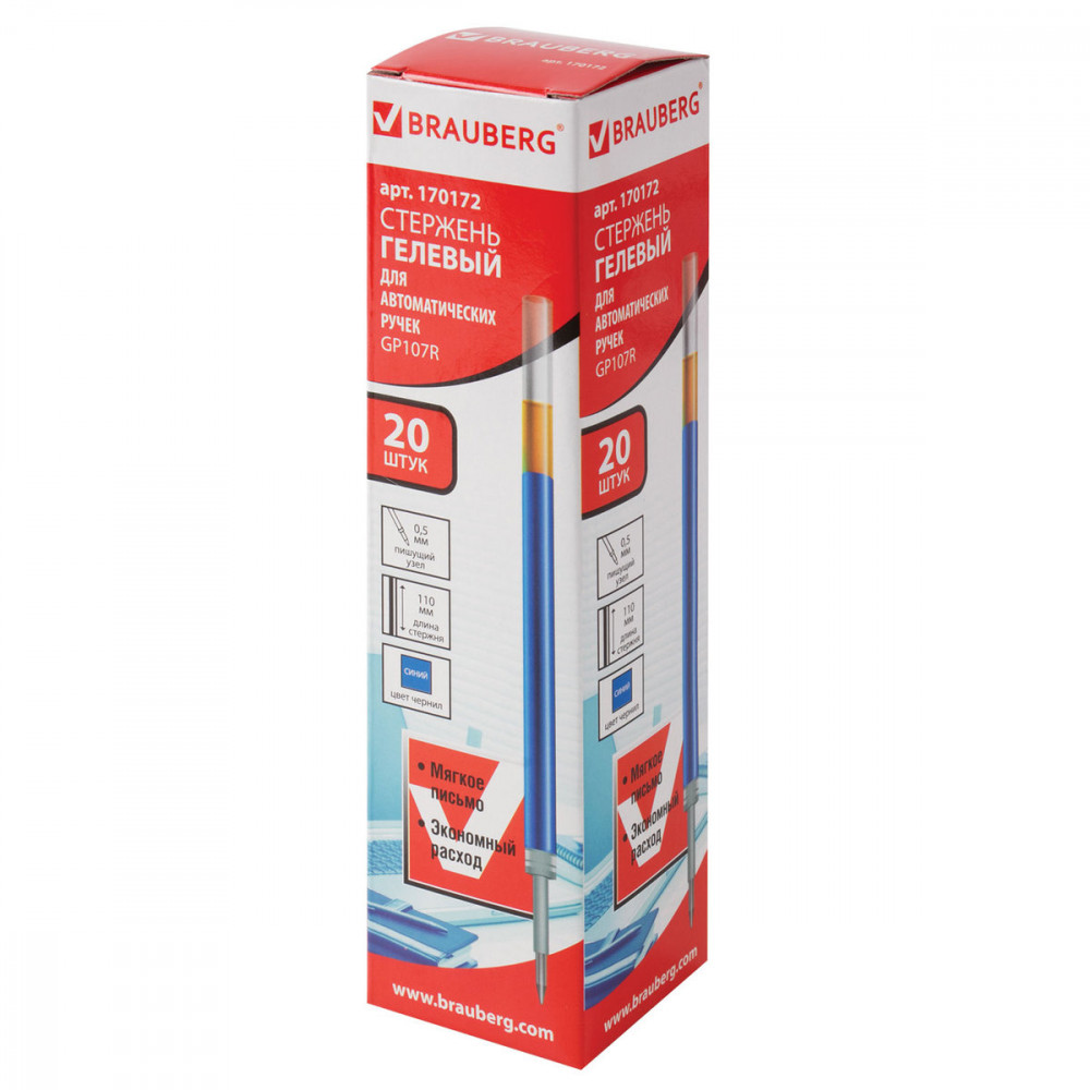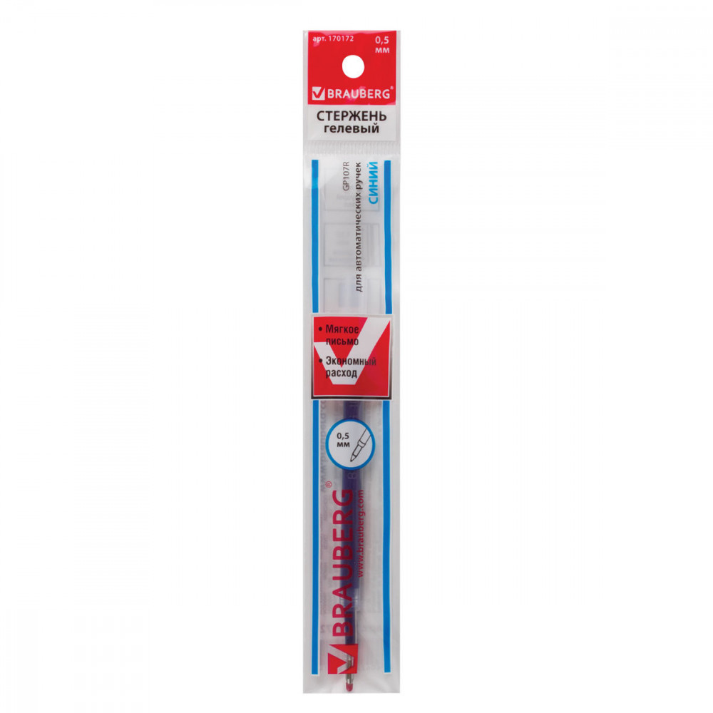 Стержень BRAUBERG с гелевыми чернилами обеспечивает ровное, комфортное письмо. Подходит к большинству автоматических гелевых ручек.