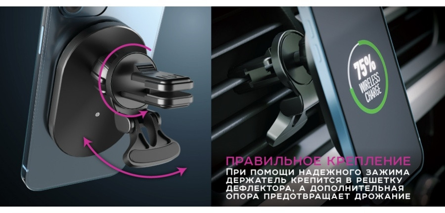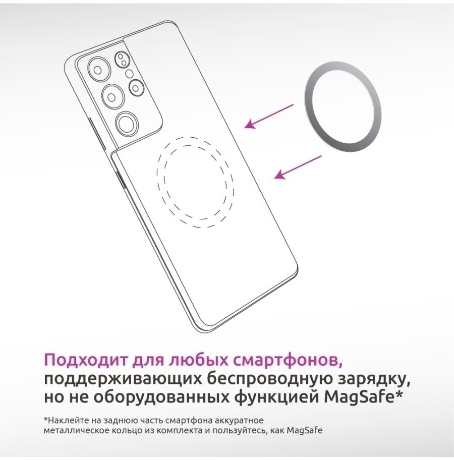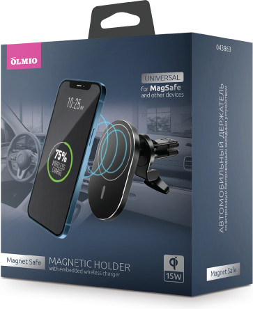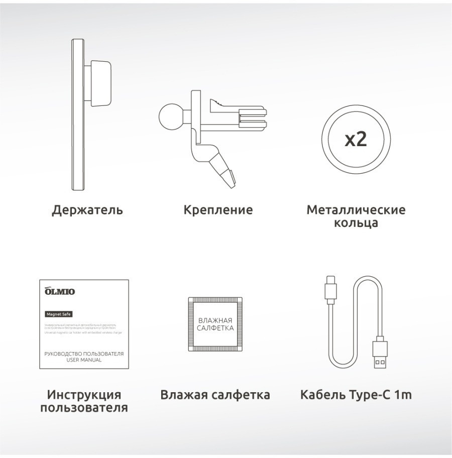 Olmio Держатель автомобильный Magnet Safe QiВ данный момент этот товар отсутствует в продаже. Возможно, у нас найдется аналогичный или похожий товар здесь. Держатель автомобильный Olmio Magnet Safe Qi предназначен для совместного использования со всеми устройствами, в которых реализована поддержка технологии беспроводной зарядки MagSafe. Фиксация устройства на держателе осуществляется при помощи магнитного кольца, которое располагается на задней стороне смартфона. Интеллектуальный держатель оптимизирует необходимые параметры подачи питания в зависимости от характеристик устройства. Конструкция крепления с вращением на 360 градусов повышает комфорт в использовании Olmio Magnet Safe Qi. В комплекте поставляются 2 металлических кольца, влажная салфетка и кабель питания с разъемом стандарта USB Type-C. |