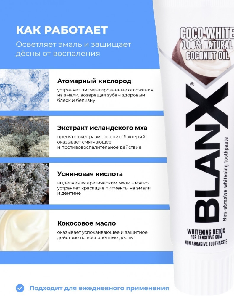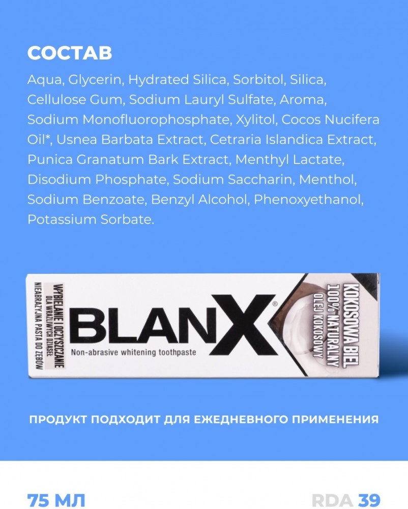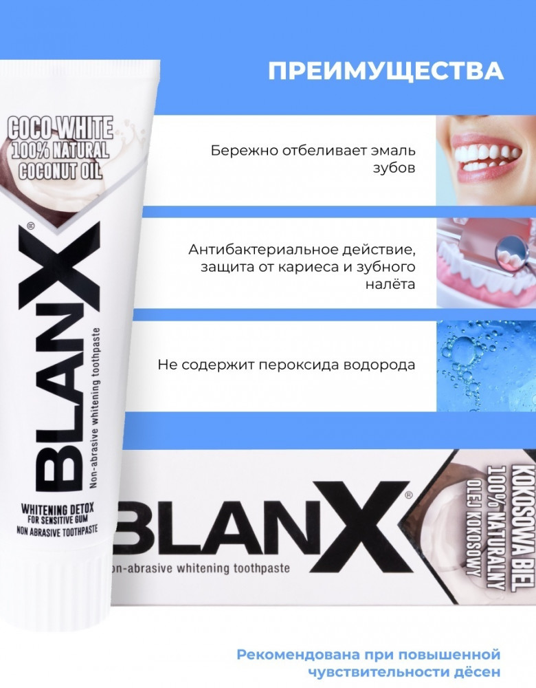 Blanx Зубная паста отбеливающая Coco White с кокосовым маслом для чувствительных десен