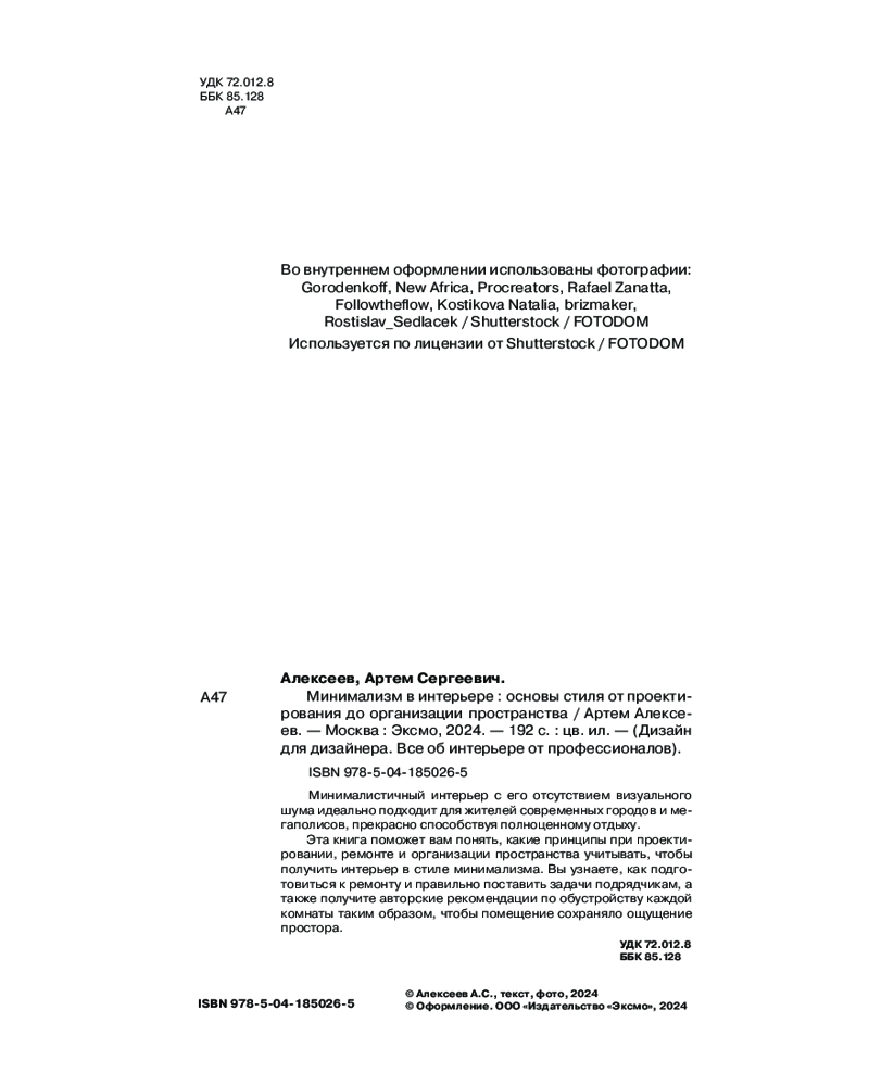 💳 Оплатить за товар можно при получении 🇰🇿 Есть бесплатная доставка по Казахстану от 1 дня 🎁 Копите бонусы с каждой покупки Серия: Дизайн для дизайнера. Все об интерьере от профессионалов Наша повседневная жизнь полна суеты, постоянного мельтешения людей, рекламных вывесок и ярких акцентов в архитектуре и интерьере. Дом — это наш островок спокойствия, в который мы приходим отдохнуть, набраться сил, ограничиться минимумом цветов и фактур. Минималистический интерьер с его отсутствием визуального шума прекрасно способствует полноценному отдыху. Именно поэтому минимализм идеально подходит жителям современных городов и мегаполисов. |