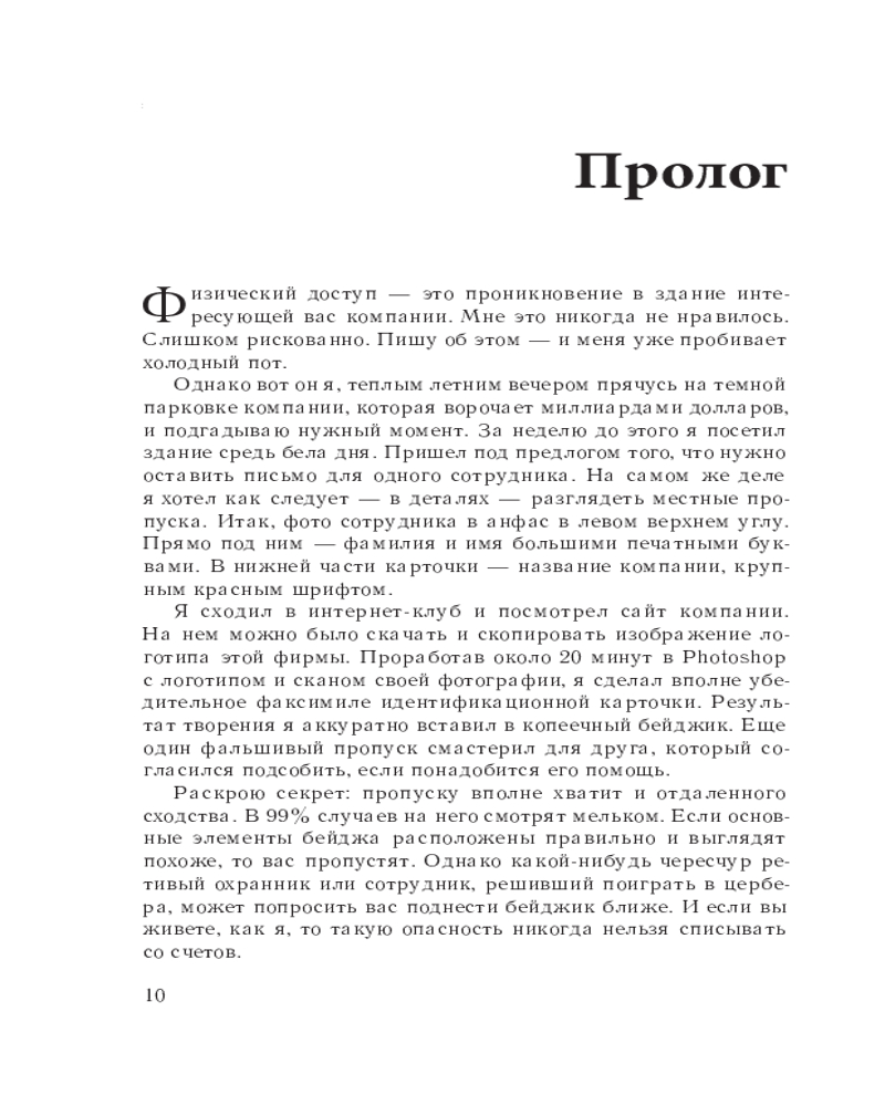 | Кевин Д. Митник — консультант по безопасности различных корпораций по всему миру и соучредитель консалтинговой компании Defensive Thinking (Защитное Мышление), расположенной в Лос-Анжелесе (defensivethinking.com). Кевин Д. Митник выступал в Сенате перед правительственным комитетом с докладом о необходимости разработки законодательной базы для обеспечения безопасности информационных систем правительства. Его статьи публиковались в центральных новостных и профессиональных журналах. Он принимал... |