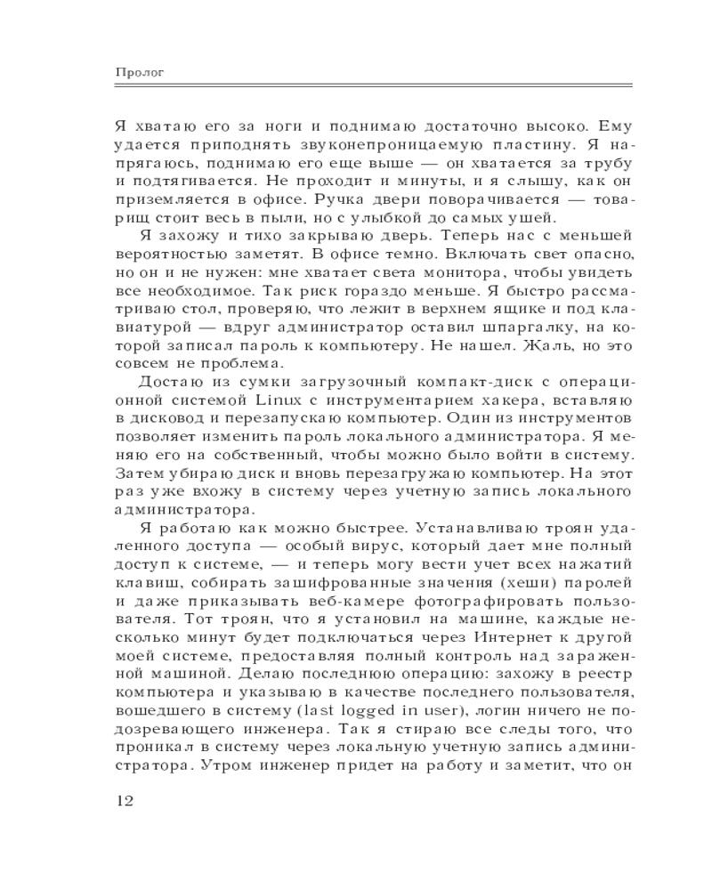 💳 Оплатить за товар можно при получении 🇰🇿 Есть бесплатная доставка по Казахстану от 1 дня 🎁 Копите бонусы с каждой покупки Серия: КиберБез. Лучшие книги о безопасности в сети Кевин Митник по праву считается самым неуловимым мастером компьютерного взлома в истории. Он проникал в сети крупнейших мировых компаний, — и, как бы оперативно ни спохватывались власти, Митник был быстрее, вихрем проносясь через телефонные коммутаторы, компьютерные системы и сотовые сети. Он долгие годы рыскал по киберпространству, всегда опережая преследователей не на шаг, а на три шага, и заслужил славу человека, которого невозможно остановить. Но для Митника хакерство не сводилось только к технологическим эпизодам — он плел хитроумные сети обмана, проявляя редкое коварство и выпытывая у ничего не подозревающего собеседника ценную информацию. |