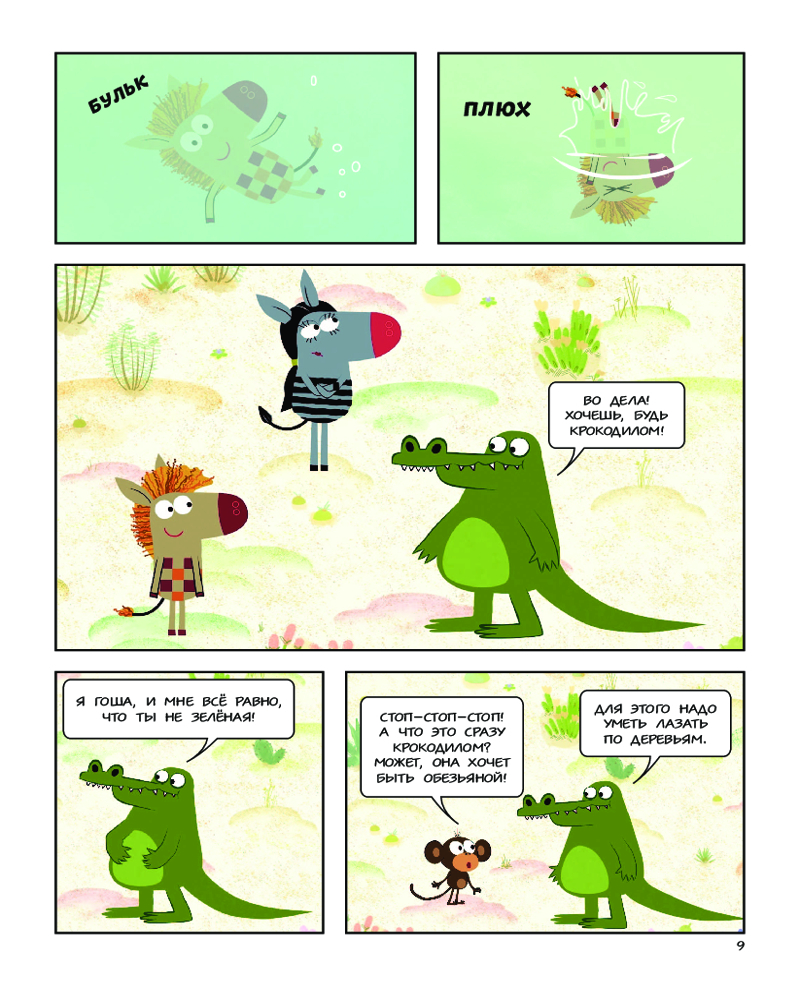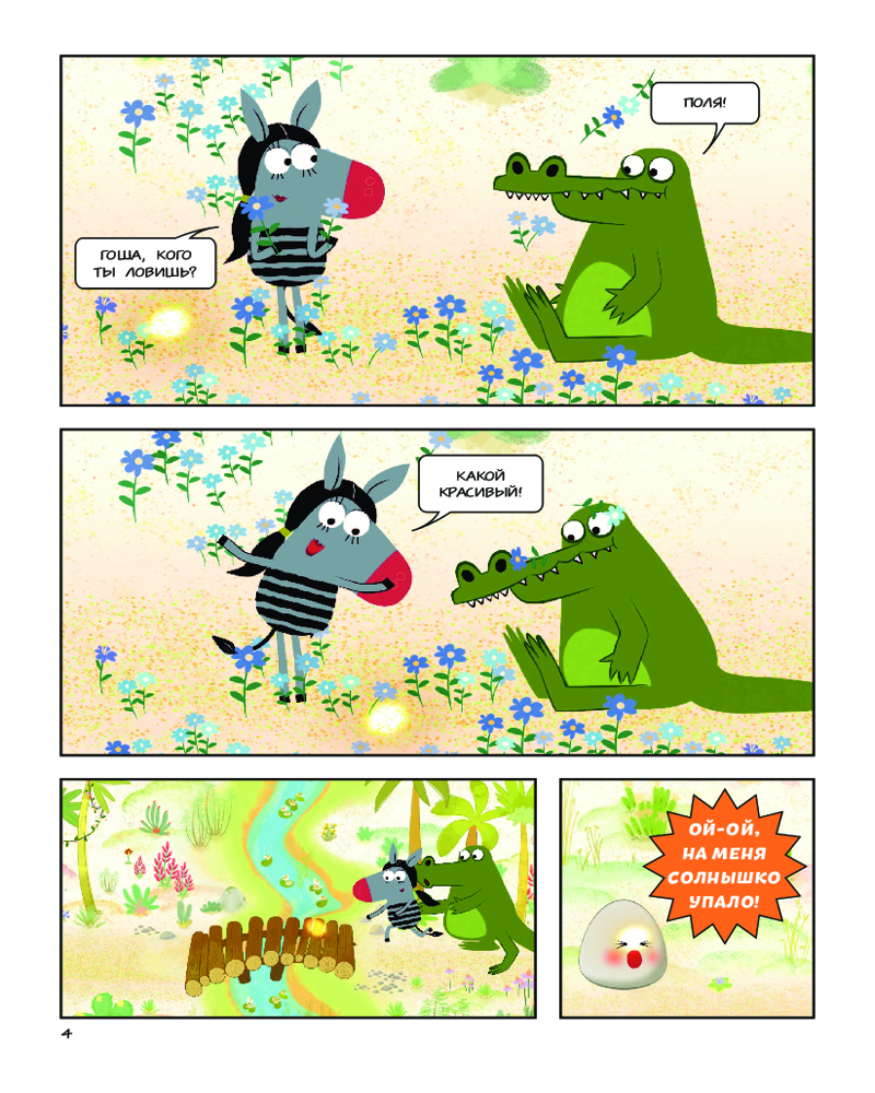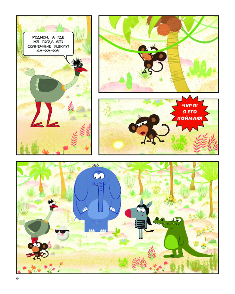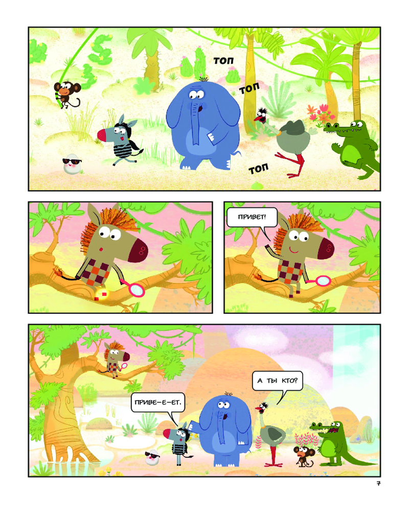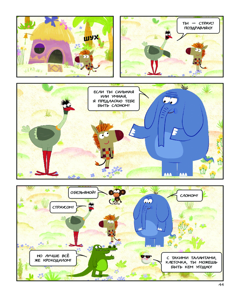 Серия: Союзмультфильм. Комиксы для тех, кто «ужасно боится всего скучного»! В тропиках живут совершенно разные звери: дисциплинированная зебра Поля, смелая обезьяна Яна, робкий слон Родион, добрый крокодил Гоша и неразлучные братья-страусы Паша и Петя. Но уникальная зебра без полосочек может найти общий язык со всеми. На своём примере Клеточка покажет, как важно быть смелым, решительным и дружелюбным. Звери научатся понимать друг друга, находить компромисс, не стесняться своих интересов и не обижать других ради шутки. |
