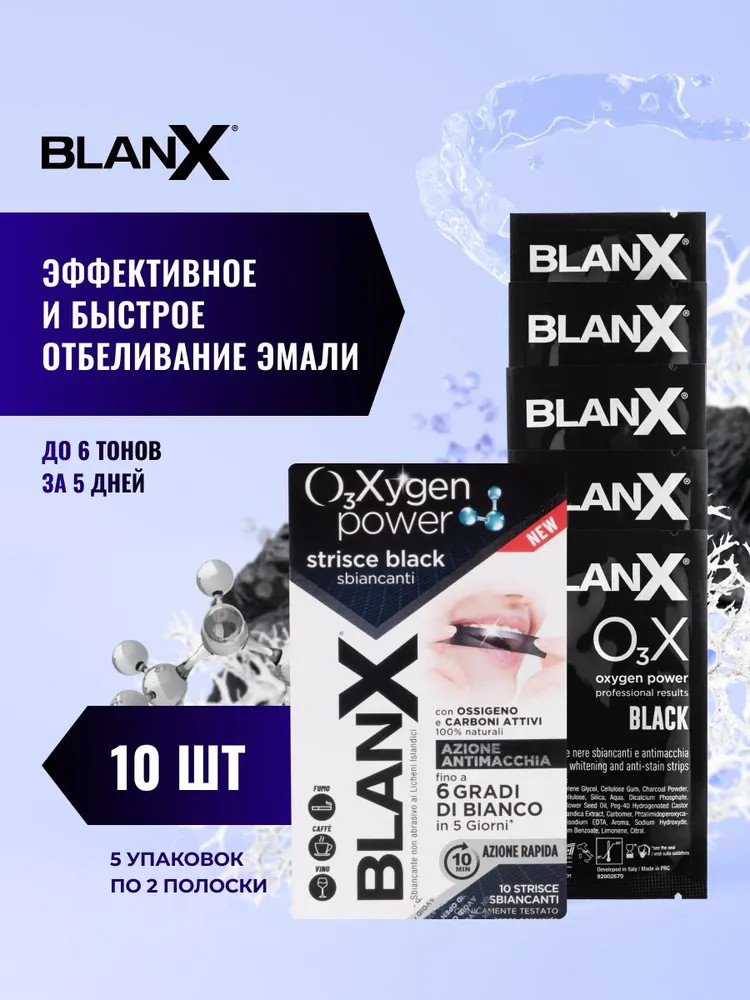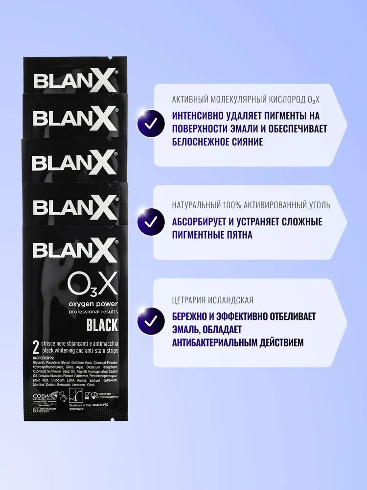 Blanx Полоски для отбеливания зубов с углем «O3X Whitening Strips Black»+414
