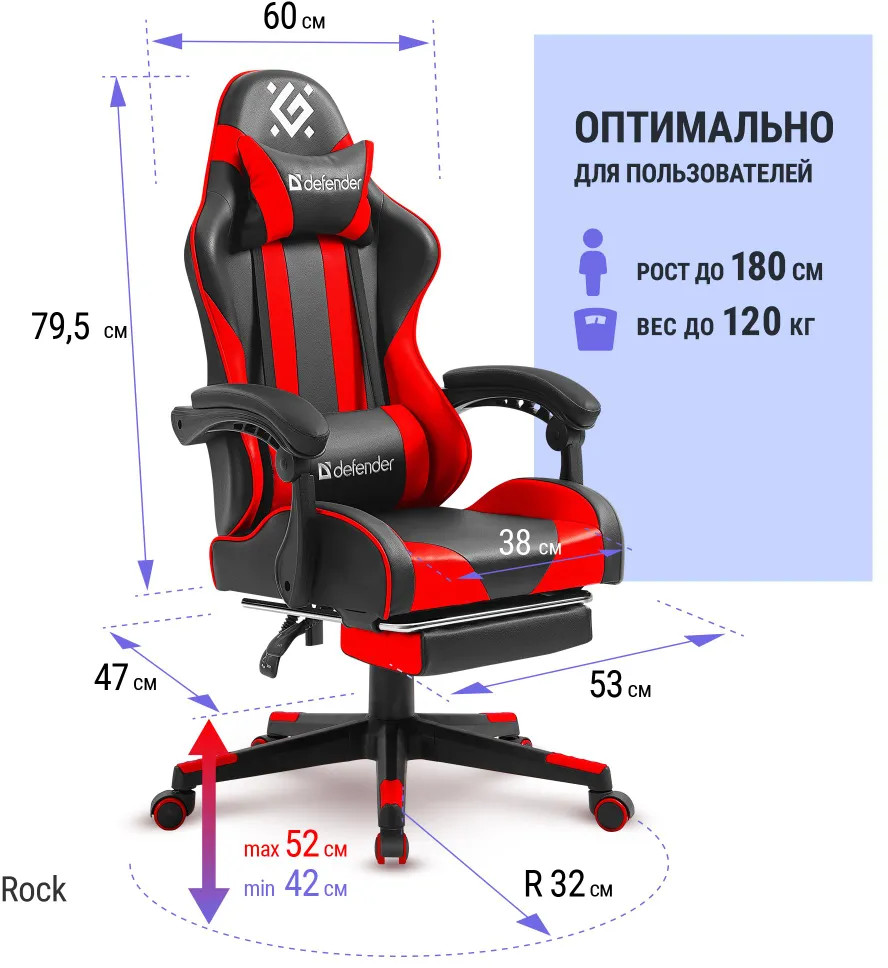 Комфортная модель для игры и работы. А если нужно расслабиться, то это легко сделать откинув спинку кресла и достав подножку. Надежность кресла обусловлена наличием металлической рамы и прочной крестовины. Разработанная специалистами по эргономике система посадки позволит не испытывать дискомфорта даже во время длительных виртуальных сражений. Яркий и стильный дизайн впишется в любой интерьер и позволит с одного взгляда распознать игровую направленность кресла.