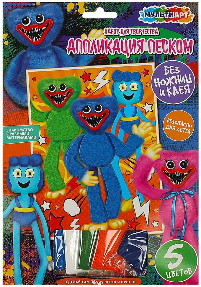 💳 Оплатить за товар можно при получении 🇰🇿 Есть бесплатная доставка по Казахстану от 1 дня 🎁 Копите бонусы с каждой покупки Набор для творчества — аппликация из песка «Монстры-зубастики» ТМ «Мульти Арт» — отличный подарок для ребёнка, который будет способствовать развитию его творческих способностей. |