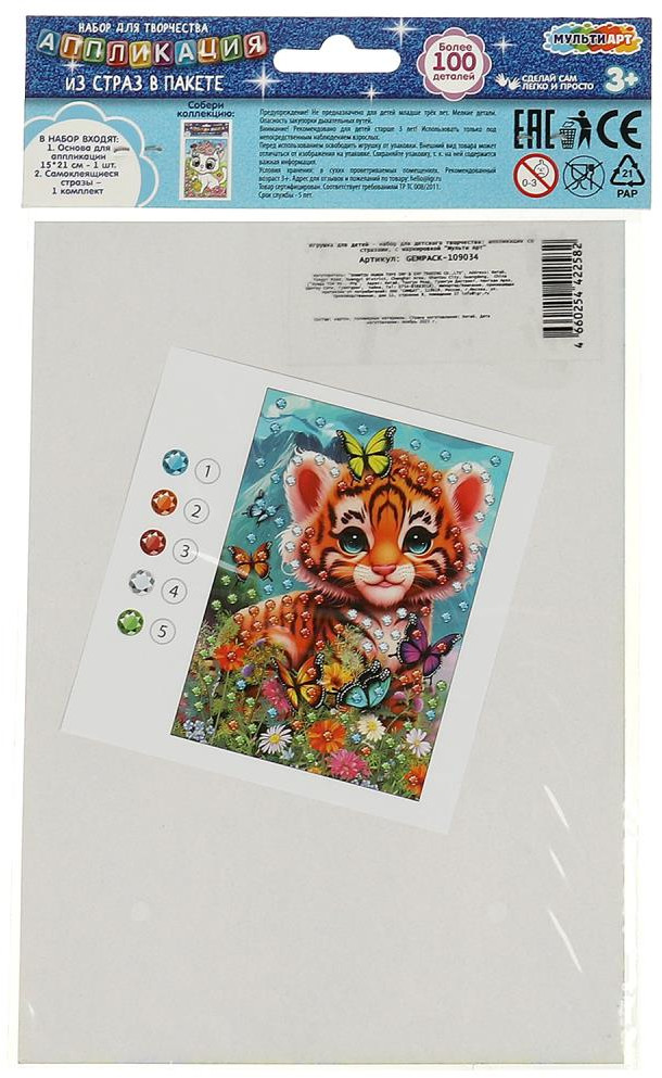 Multi Art Аппликация из страз «Милые животные»В данный момент этот товар отсутствует в продаже. Возможно, у нас найдется аналогичный или похожий товар здесь. Набор для творчества - аппликация из страз «Милые животные» ТМ «Мульти Арт» - отличный подарок для ребёнка, который будет способствовать развитию его творческих способностей.С помощью красочной основы и разноцветных сверкающих страз маленькая художница сможет самостоятельно создать блестящую картинку с изображением очаровательного тигрёнка. Готовую поделку можно подарить близким или использовать для украшения интерьера. |