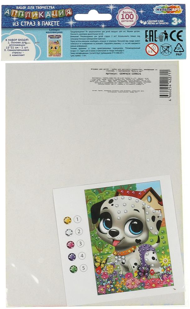 Multi Art Аппликация из страз «Питомцы»В данный момент этот товар отсутствует в продаже. Возможно, у нас найдется аналогичный или похожий товар здесь. Набор для творчества - аппликация из страз «Питомцы» ТМ «Мульти Арт» - отличный подарок для ребёнка, который будет способствовать развитию его творческих способностей.С помощью красочной основы и разноцветных сверкающих страз маленькая художница сможет самостоятельно создать блестящую картинку с изображением милого питомца. Готовую поделку можно подарить близким или использовать для украшения интерьера. |