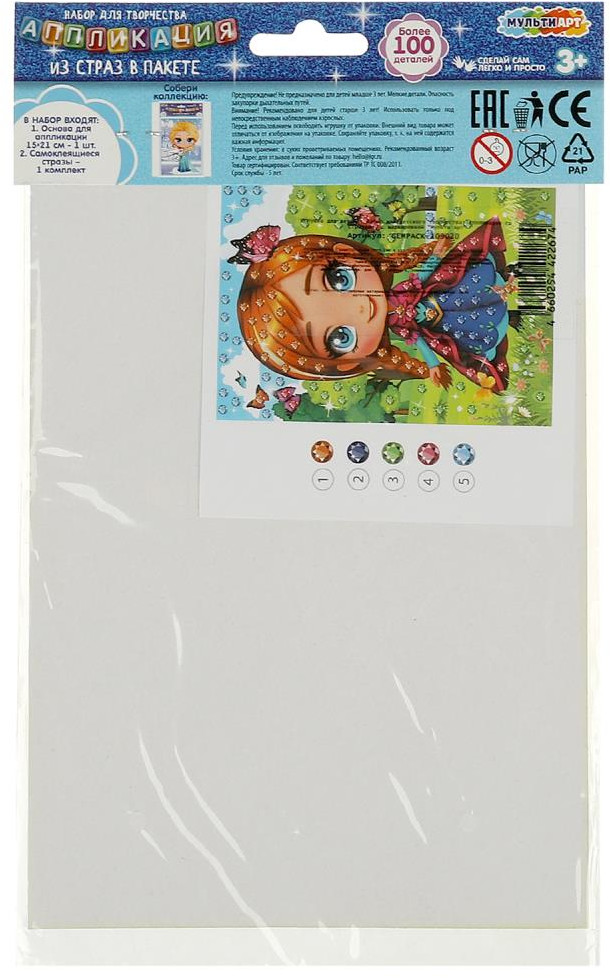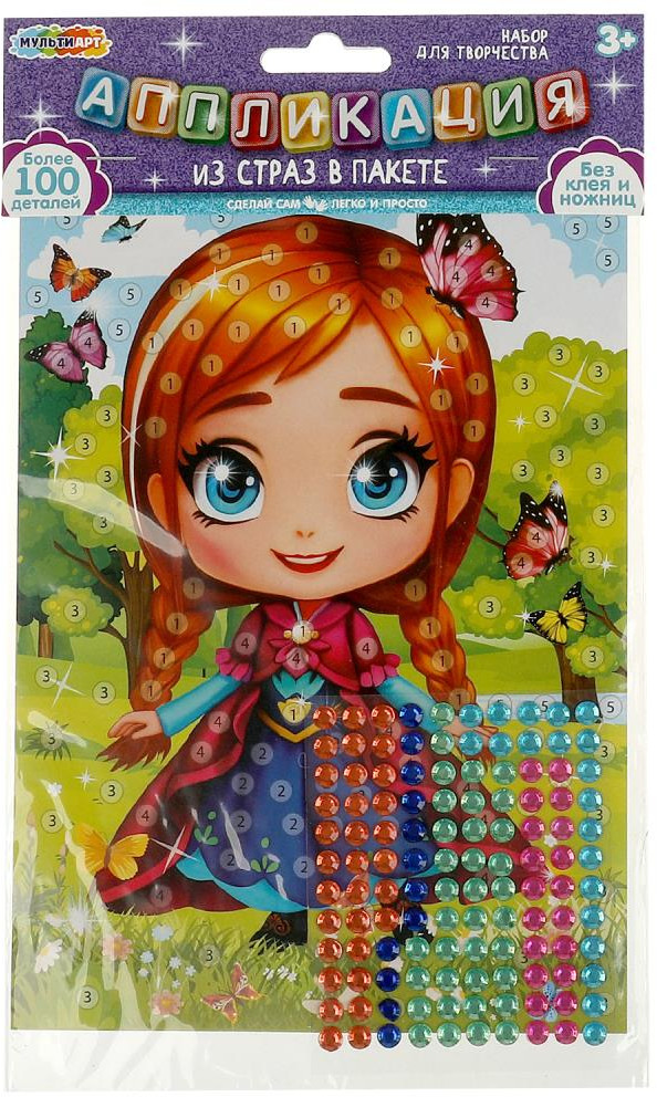 Набор для творчества - аппликация из страз «Принцесса» ТМ «Мульти Арт» - отличный подарок для ребёнка, который будет способствовать развитию его творческих способностей.С помощью красочной основы и разноцветных сверкающих страз маленькая художница сможет самостоятельно создать блестящую картинку с изображением очаровательной принцессы. Готовую поделку можно подарить близким или использовать для украшения интерьера. |