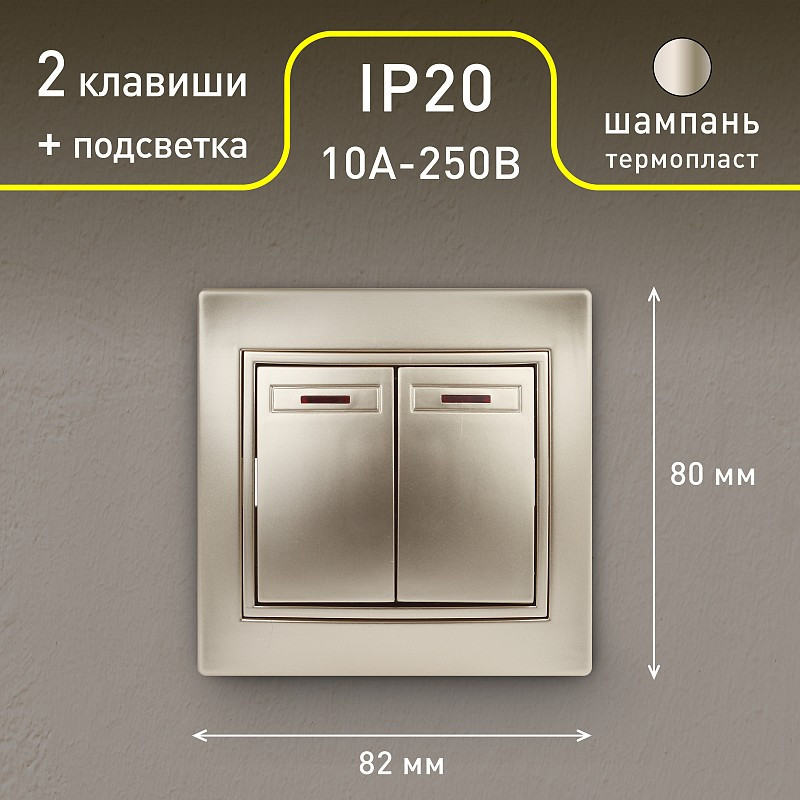 Intro Выключатель двухклавишный с подсветкой+22