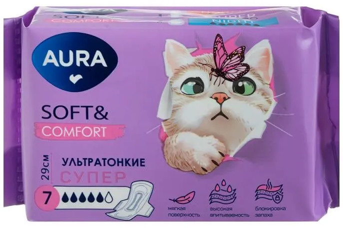 Aura Прокладки женские гигиенические ультратонкие «Soft & Comfort super»