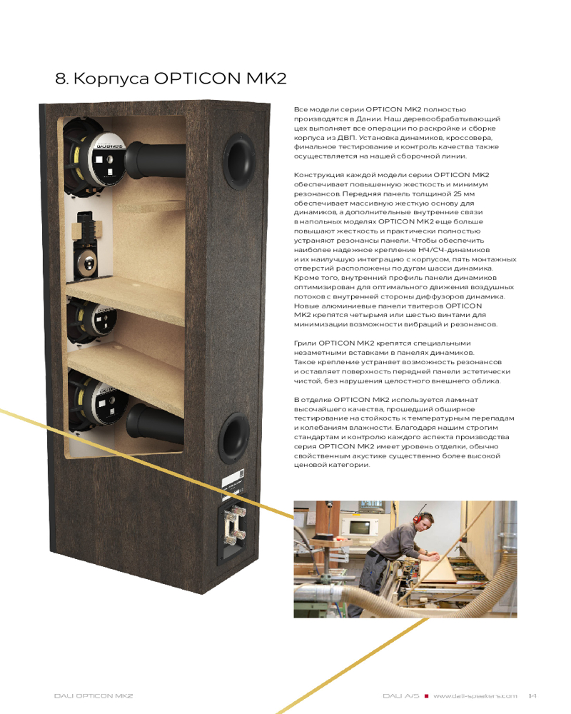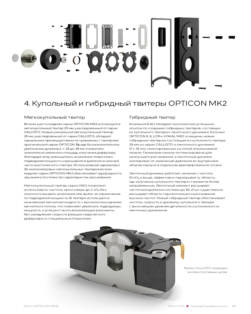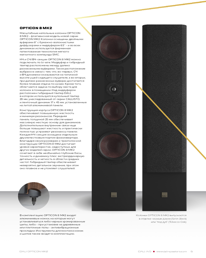 OPTICON VOKAL MK2 сочетает необычайно глубокие басы, точность и динамику плюс экстраординарную детальность и четкость в области средних частот. Гибридный твитер обеспечивает невероятно детальное и информативное звучание, при этом оно плавное и не утомляет слушателей.