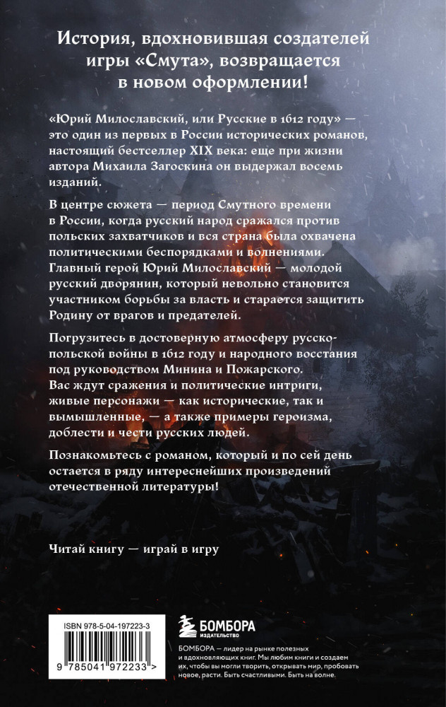💳 Оплатить за товар можно при получении 🇰🇿 Есть бесплатная доставка по Казахстану от 1 дня 🎁 Копите бонусы с каждой покупки Серия: Легендарные компьютерные игры. Истории Еще при жизни автора Михаила Загоскина книга «Юрий Милославский, или Русские в 1612 году» выдержала восемь изданий. Главный герой Юрий Милославский — молодой русский дворянин, который невольно становится участником борьбы за власть, когда всю страну охватывают политические беспорядки и волнения. Юрий встает на защиту Родины, чтобы оградить ее от врагов и предателей. Погрузитесь в достоверную атмосферу русско-польской войны в 1612 году и народного восстания под руководством Минина и Пожарского. Познакомьтесь с романом, который и по сей день остается в ряду интереснейших произведений отечественной литературы! |