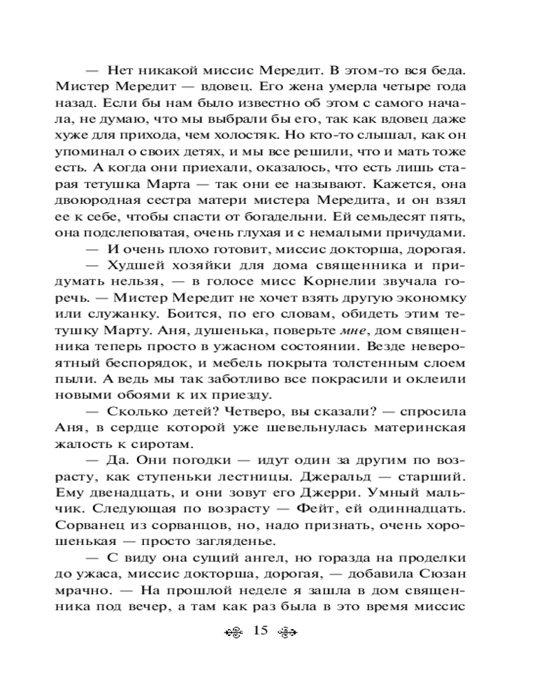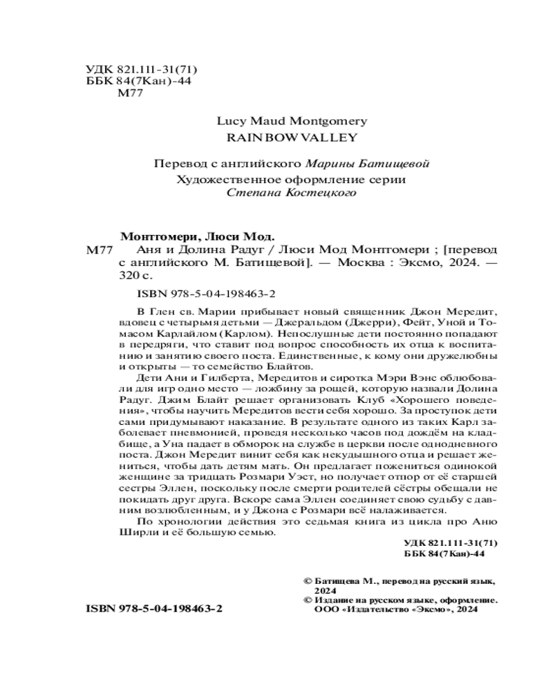 💳 Оплатить за товар можно при получении 🇰🇿 Есть бесплатная доставка по Казахстану от 1 дня 🎁 Копите бонусы с каждой покупки Серия: Яркие страницы. Коллекционные издания В Глен св. Марии прибывает новый священник Джон Мередит, вдовец с четырьмя детьми — Джеральдом (Джерри), Фейт, Уной и Томасом Карлайлом (Карлом). Непослушные дети постоянно попадают в передряги, что ставит под вопрос способность их отца к воспитанию и занятию своего поста. Единственные, к кому они дружелюбны и открыты, это семейство Блайтов. |