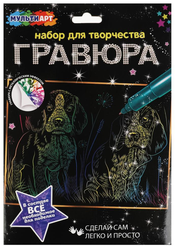 💳 Оплатить за товар можно при получении 🇰🇿 Есть бесплатная доставка по Казахстану 🎁 Копите бонусы с каждой покупки Набор для творчества «Гравюра. Бигли» ТМ «Мульти Арт» — отличный подарок для ребёнка, который будет способствовать развитию его творческих способностей.С помощью данного набора юный художник сможет создать эффектную разноцветную картину с металлическим блеском на чёрном фоне. Контур рисунка уже нанесён на основу, остаётся только процарапать изображение специальным штихелем. Готовую поделку можно подарить близким или использовать для украшения интерьера. |