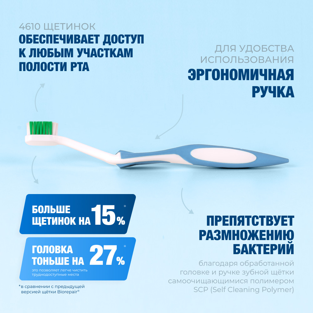 💳 Оплатить за товар можно при получении 🇰🇿 Есть бесплатная доставка по Казахстану от 1 дня 🎁 Копите бонусы с каждой покупки Первая зубная щётка на рынке профессионального ухода за полостью рта на основе microRepair. Создана по новейшей технологии с нанесением на щетину специальных частиц microRepair, которые восстанавливают эмаль. Это цинк замещенный гидроксиапатит, который схож по составу с эмалью и дентином наших зубов. Имеет запатентованную эргономичную ручку с уникальным изгибом головки, которая располагается параллельно ей. Это обеспечивает доступ к любому месту в полости рта. |