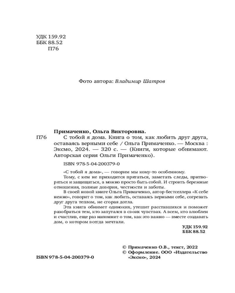 💳 Оплатить за товар можно при получении 🇰🇿 Есть бесплатная доставка по Казахстану от 1 дня 🎁 Копите бонусы с каждой покупки Серия: Книги, которые обнимают. Авторская серия Ольги Примаченко «Нас не учат строить отношения — а мы всё пытаемся делать это „правильно“. Ошибаемся, разочаровываемся, порой отчаиваемся. Хорошо, что появилась такая книга, которая говорит: в любви не ищи, как будет „правильно“, а слушай себя». — Юлия Пирумова, @pirumova_yulia, психотерапевт, автор книг «Хрупкие люди» и «Все дороги ведут к себе». |